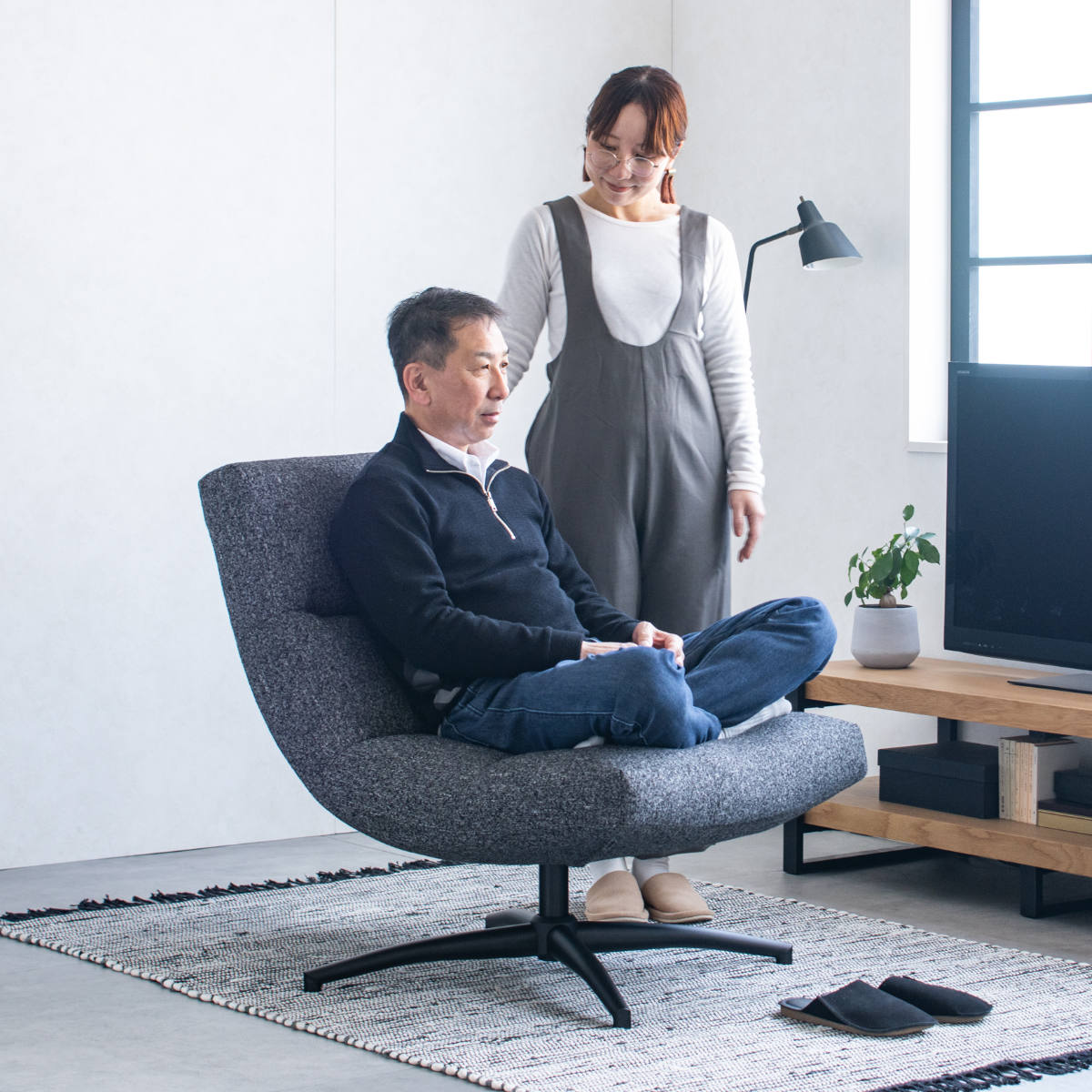 リビングチェア 座面高45cm 座面ワイド リラックスチェア エーデル
