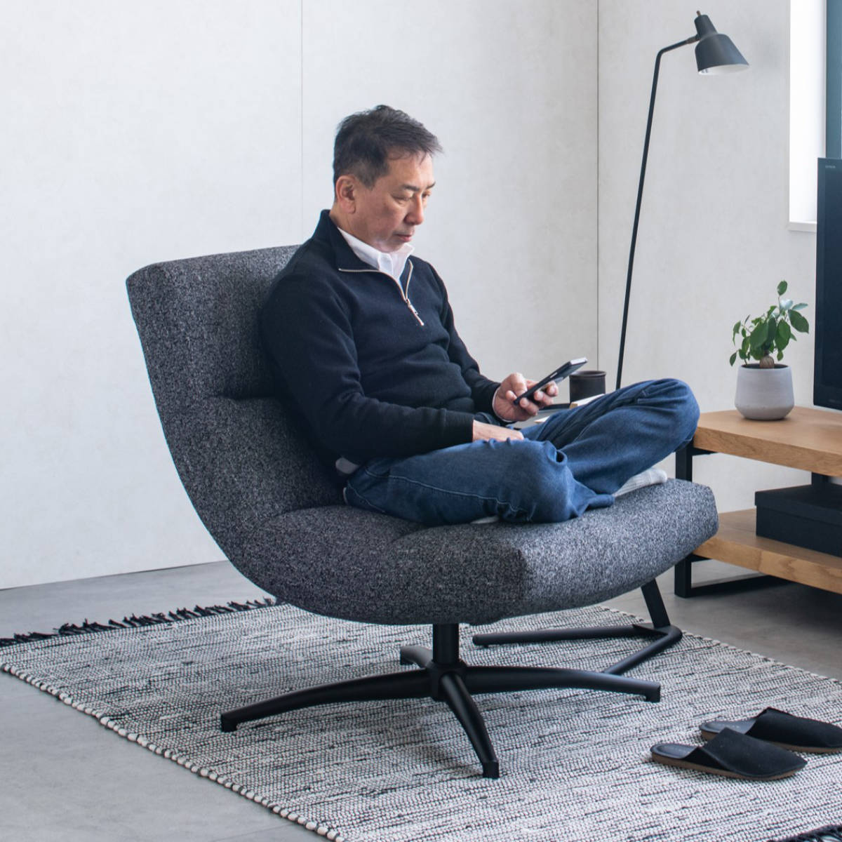 広めの座面なので、あぐらをかいたり足を上げて座ることができます。窮屈さを感じにくくゆったりと座れます。