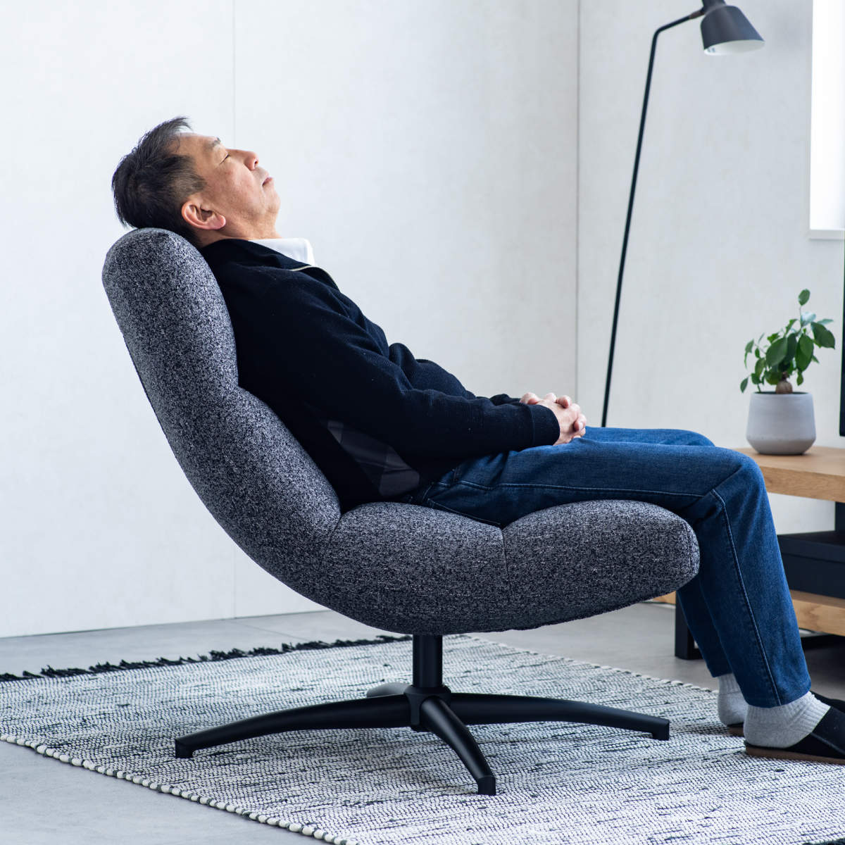 リラックスできる角度でゆったりと寛ぐことができるチェアです。アームレス仕様のため、窮屈なく座っていただけます。少し贅沢気分が楽しめるモダンなスタイルです。
