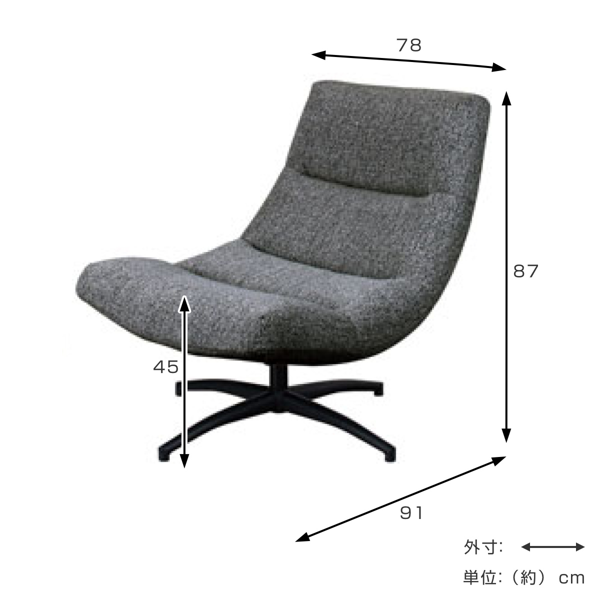 | サイズ | 約 幅78×奥行91×高さ87(cm) 座面高:約 45(cm) |