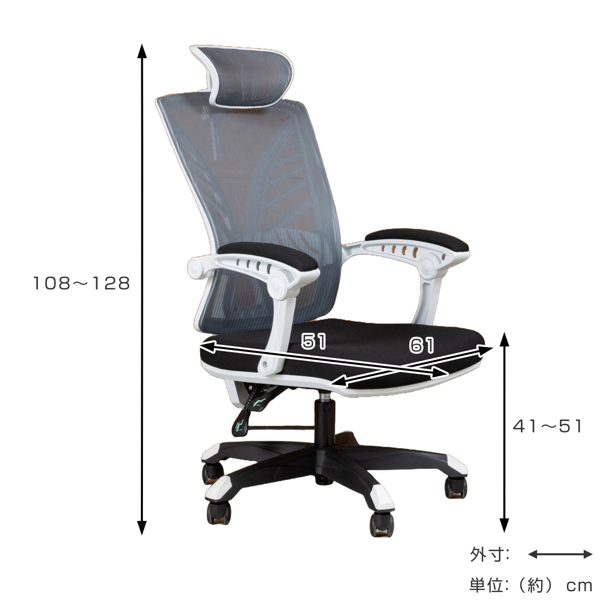| サイズ | 約 幅61×奥行51×高さ108~128(cm) 座面高:約41~51(cm) |