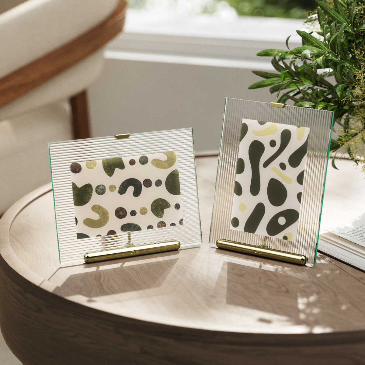 大切な写真を美しく引き立てる、装飾的なイーゼルスタイルのフォトフレームです。縦に施された繊細な溝模様が光をやわらかく拡散し、空間に上品なテクスチャーと奥行きをもたらします。シンプルながらも印象的なデザインで、リビングや寝室、玄関など、さまざまな空間に自然と調和します。