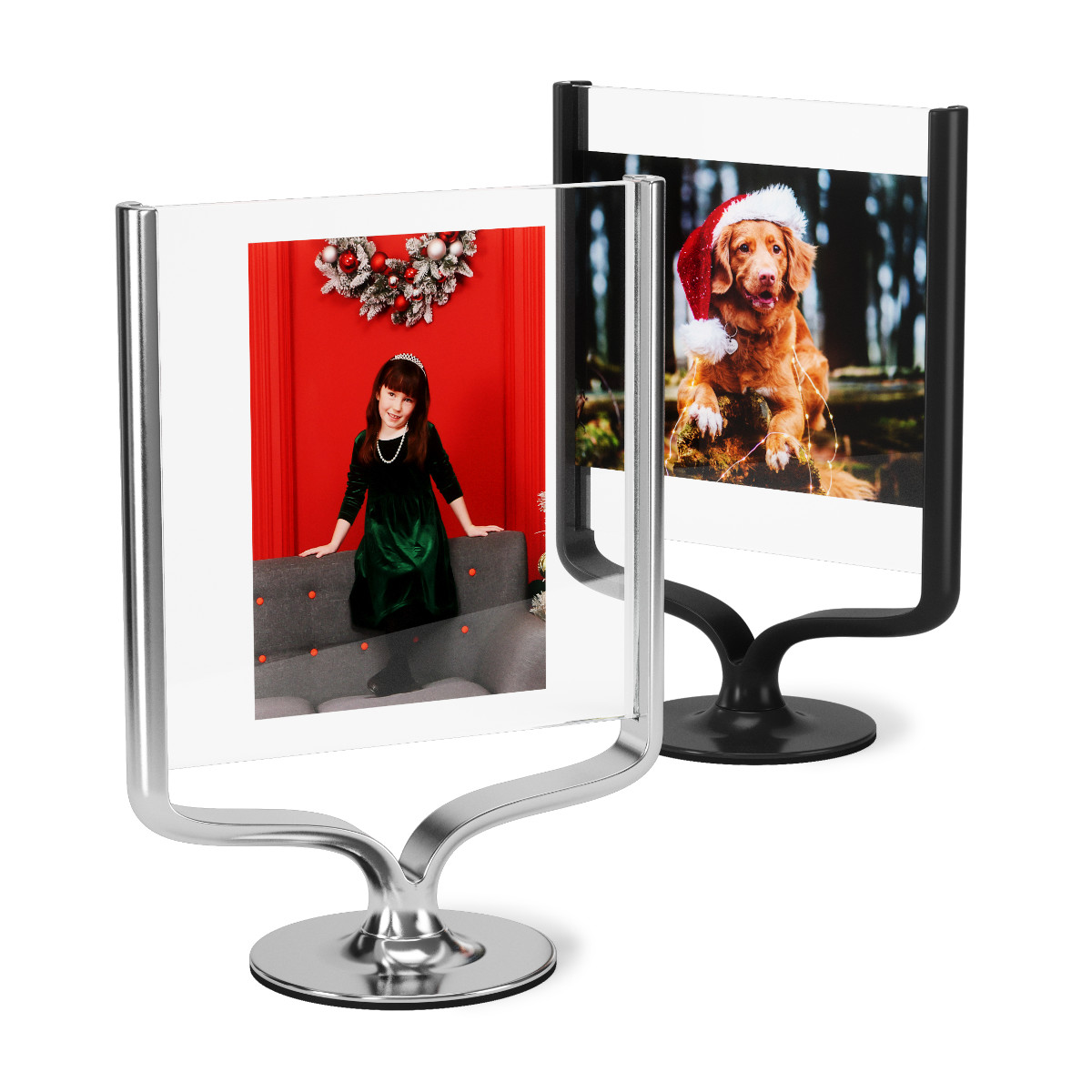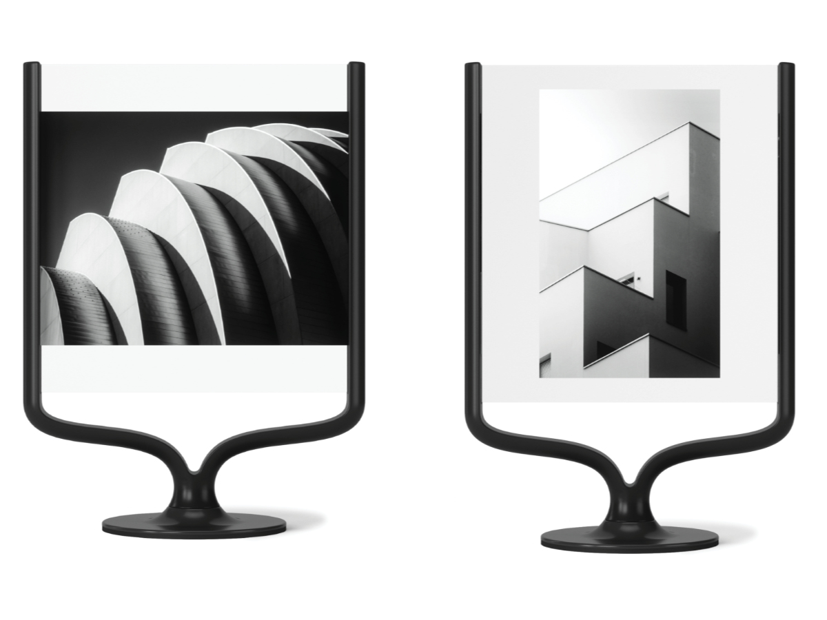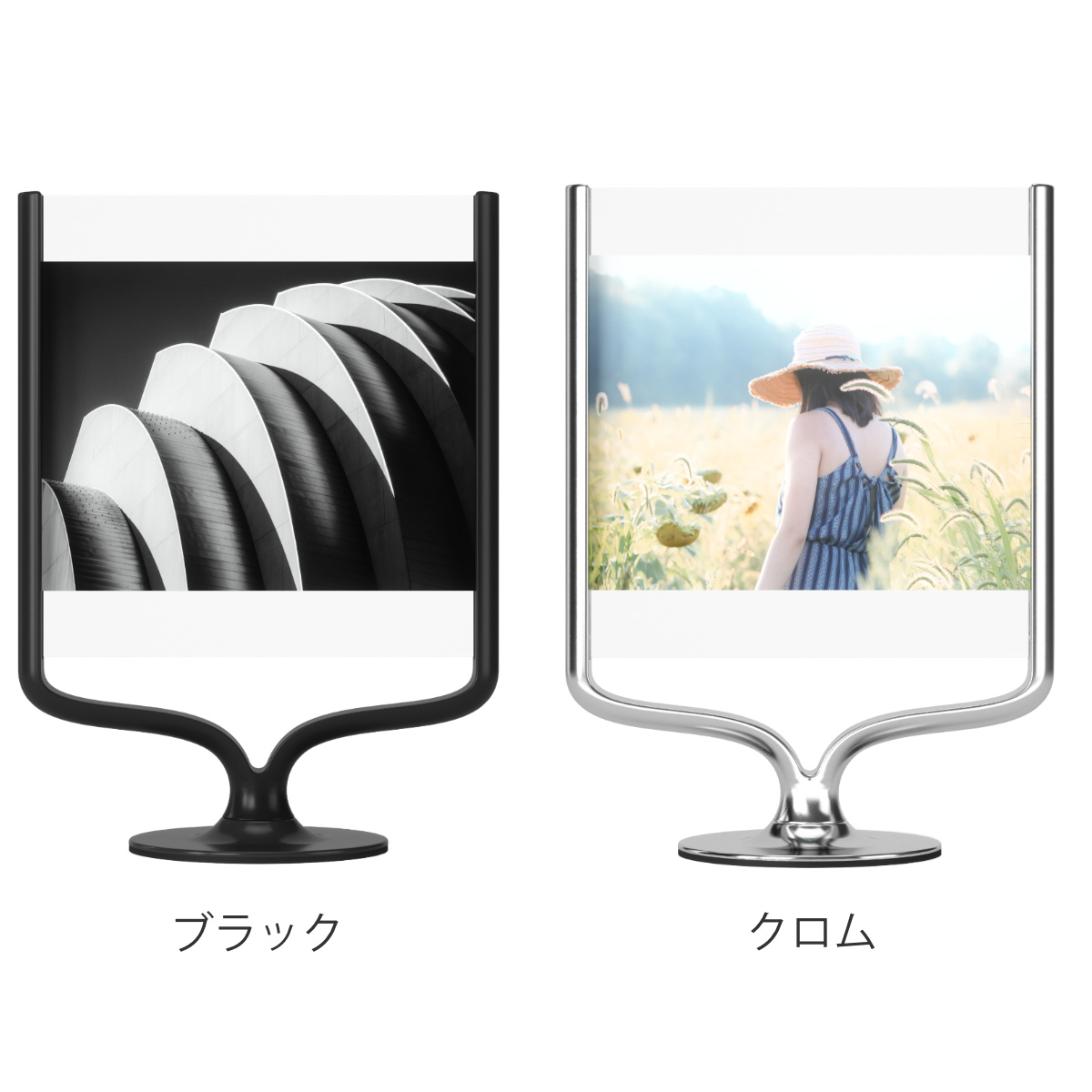 洗練されたデザインでどんな空間も簡単にワンランクアップさせる彫刻的なフォトディスプレイです。トロフィーをイメージしたデザインは360度どの角度から見ても美しく、フレームの両面に写真を飾れます。