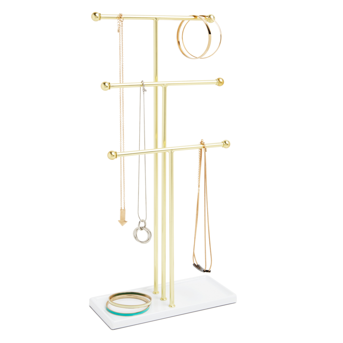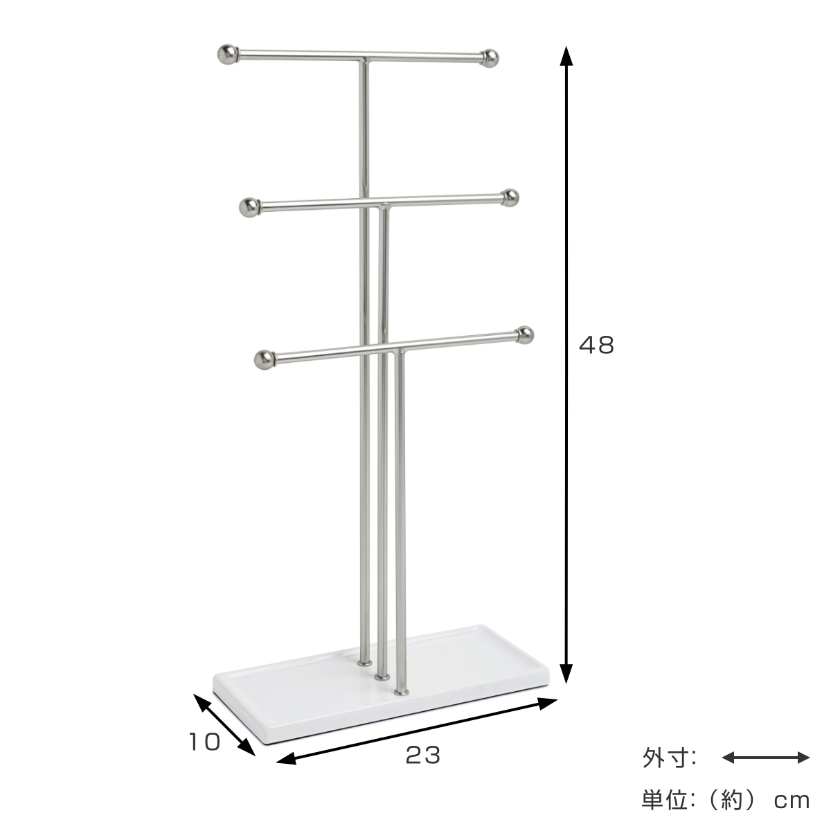 3本のバーが十分な収納スペースを提供してくれるジュエリースタンドです。お気に入りのジュエリーと一緒にモダンなディスプレイとして機能し、リビングスペースやベッドルームに新しいスタイルを加える事ができます。