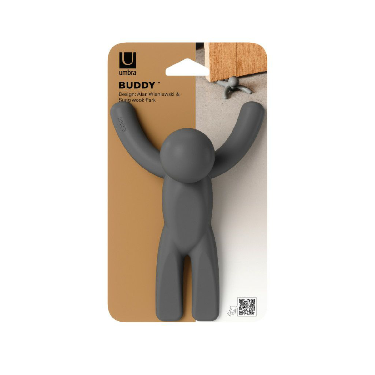 Umbraのオリジナルキャラクター、バディーのかわいいドアストッパーです。手触りが柔らかなラバー製で、どんな床面に置いても滑らずにドアをしっかり固定します。