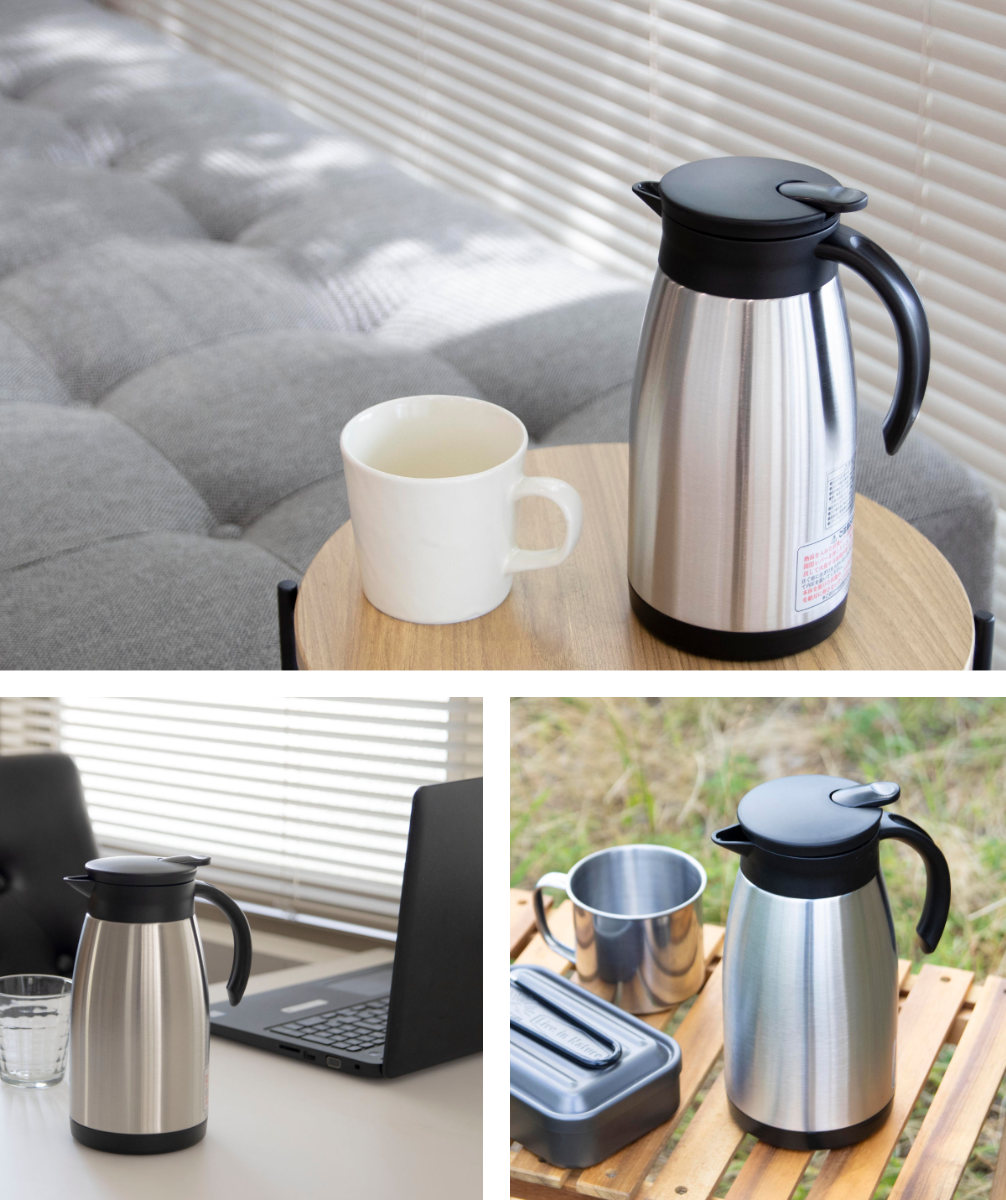 軽量でありながら丈夫なステンレス製のポットは、ご自宅はもちろん、オフィスやキャンプでのアウトドアなど屋内外の幅広いシーンで活躍します。