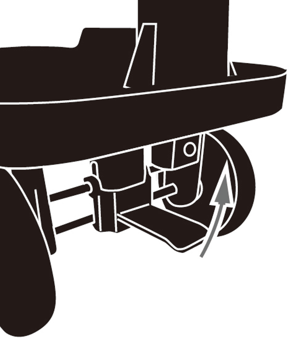 足元のレバーを上げるとストッパーがかかります。不意に動かないよう固定できるので、電車やバスなどでの移動時も安心です。