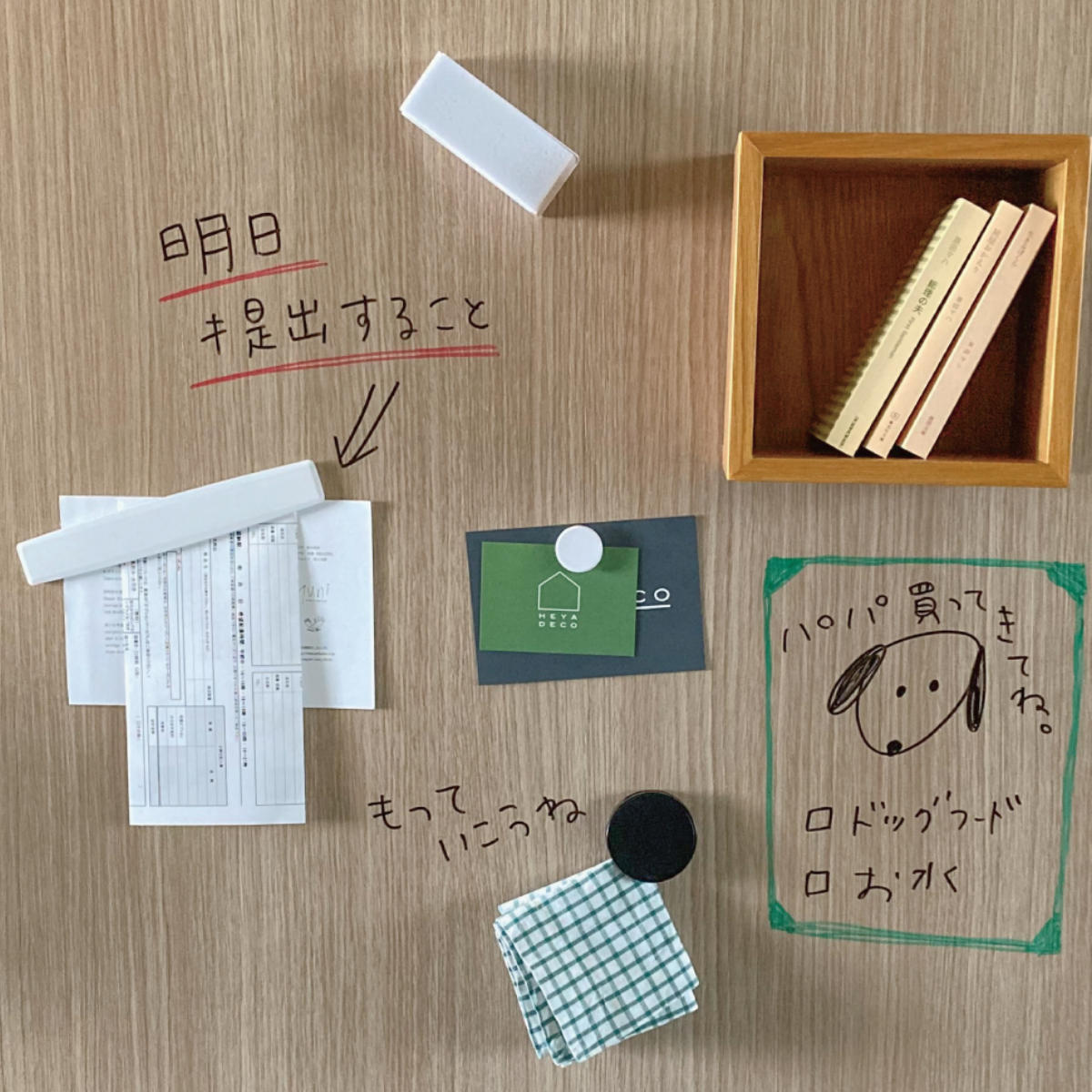 ホワイトはもちろん、意匠性のある木目にもホワイトボードマーカーでかき消し可能です。
