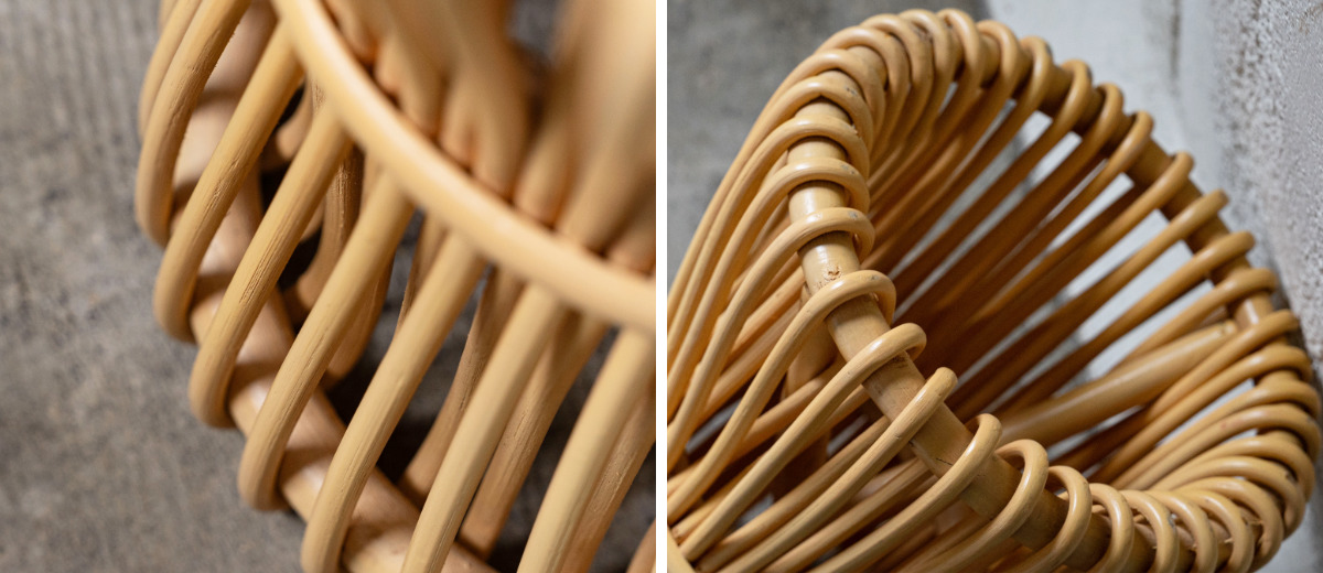こちらの商品は天然素材を使用し、一点一点丁寧に手作りしています。そのため、編み方や素材の色の違い、黒い斑点やささくれ、表皮のはがれ等が生じる場合がございます。これらは不良ではなく、天然素材特有の風合いによるものですので、ラタン製品の味わいとしてお楽しみ下さい。