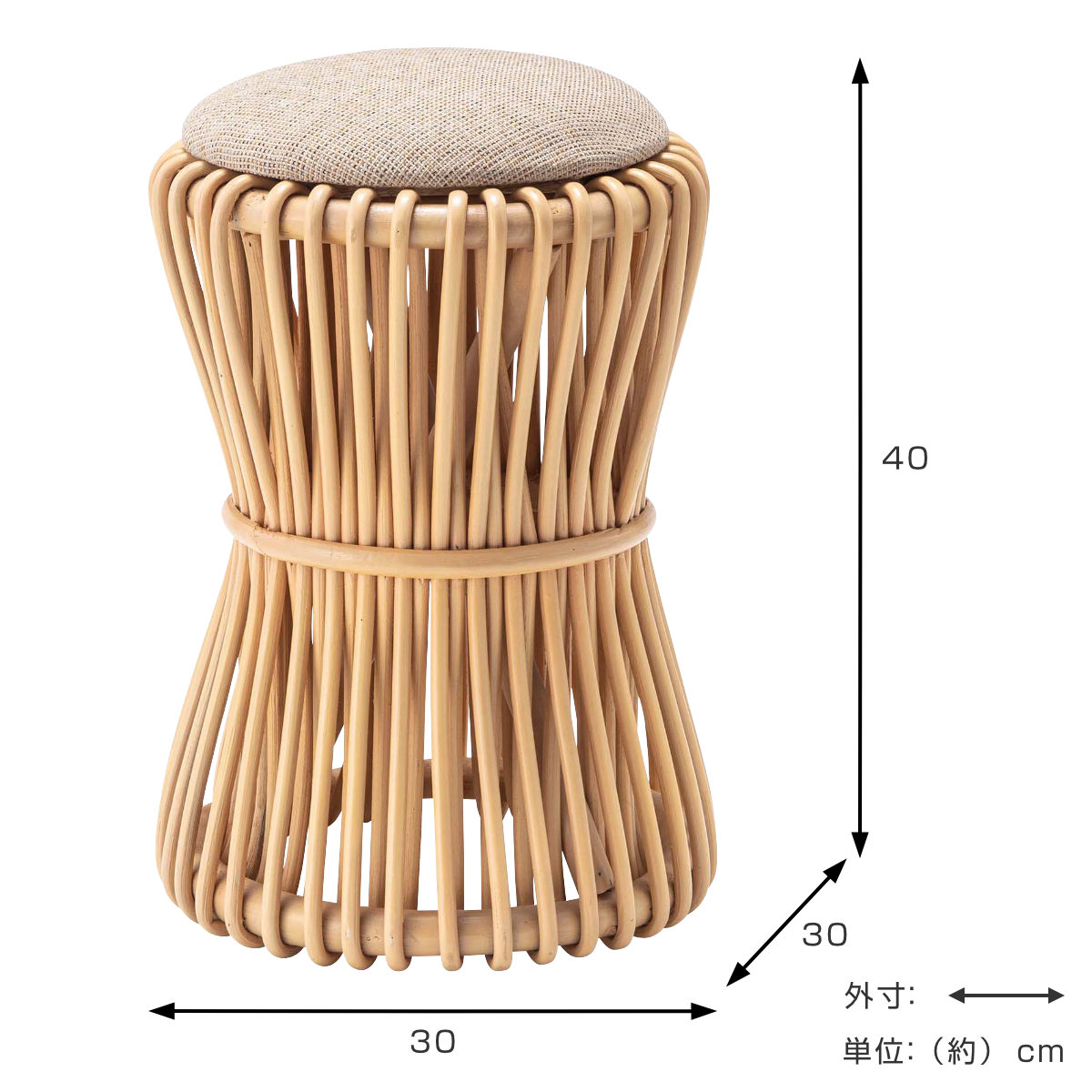 籐 ラウンドスツール 座面高40cm 鼓型 天然木