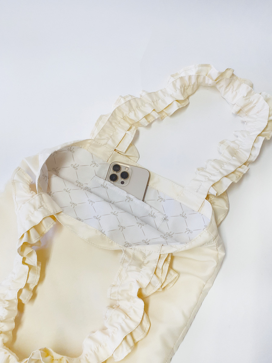 ●リボンとフリルがとってもキュートな目を惹くトートバッグです。