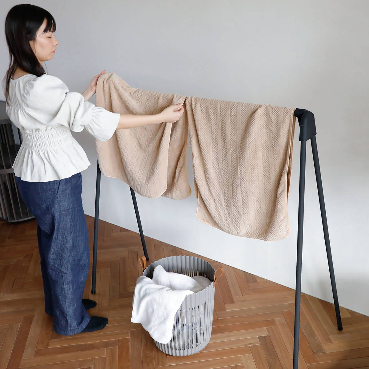 雨の日や花粉が辛い季節など、家に1つあると便利な室内干しスタンド。幅広設計なので洋服類だけでなく、バスタオルや掛け布団干しにも使えてマルチに活躍します。1人暮らしの方はリビングに置いてよく着る服を掛けたり、スペースに余裕のあるお家は玄関近くに置いてコート掛けとして使うのもおすすめです。