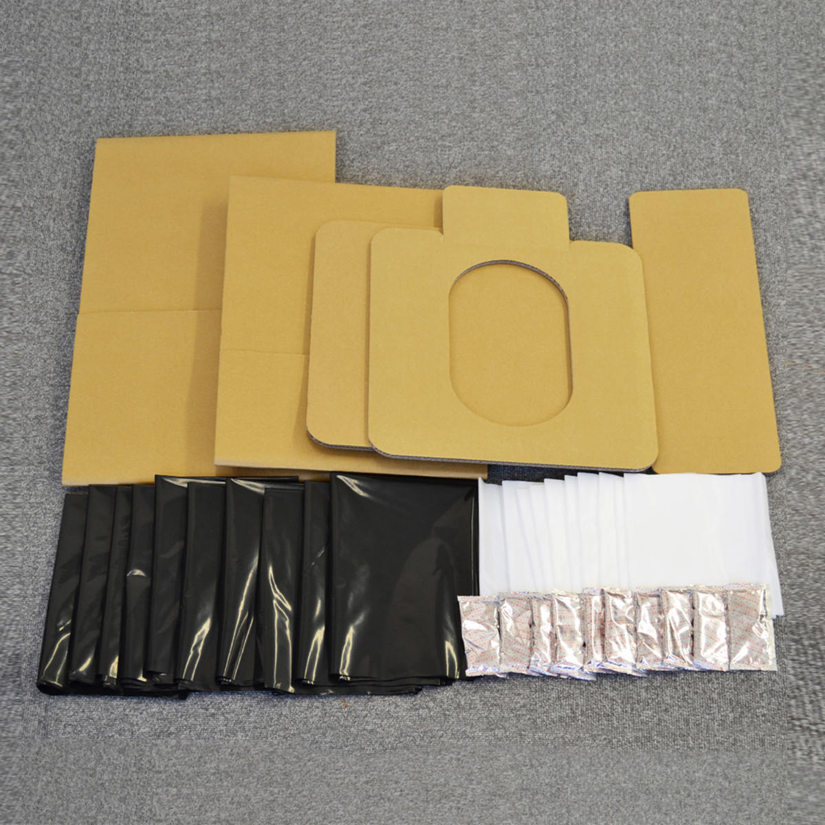 | 材質 | 組立式トイレ:ダンボール 汚物袋、処理袋:ポリエチレン 凝固剤:高分子ポリマー 消臭剤:ウッドパウダー |