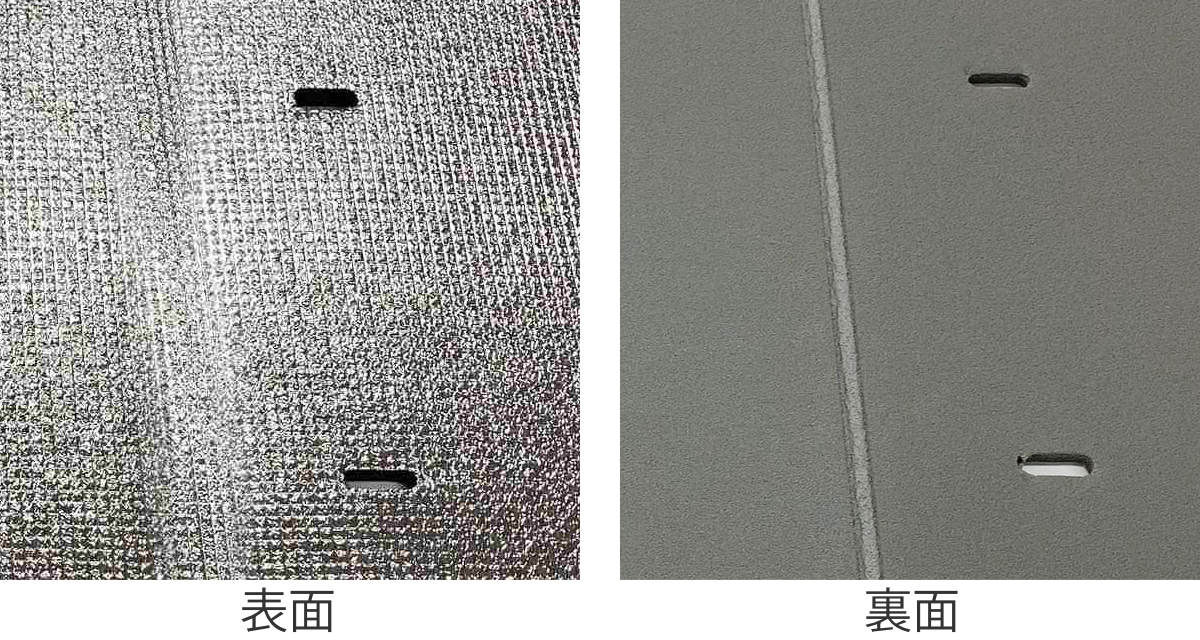 遮熱性の高いアルミが直射日光をしっかりさえぎり、難燃性と断熱性の高いポリエチレンフォームのW効果で、何も付けていない時と比べて表面温度を約28度も低く保ちます。