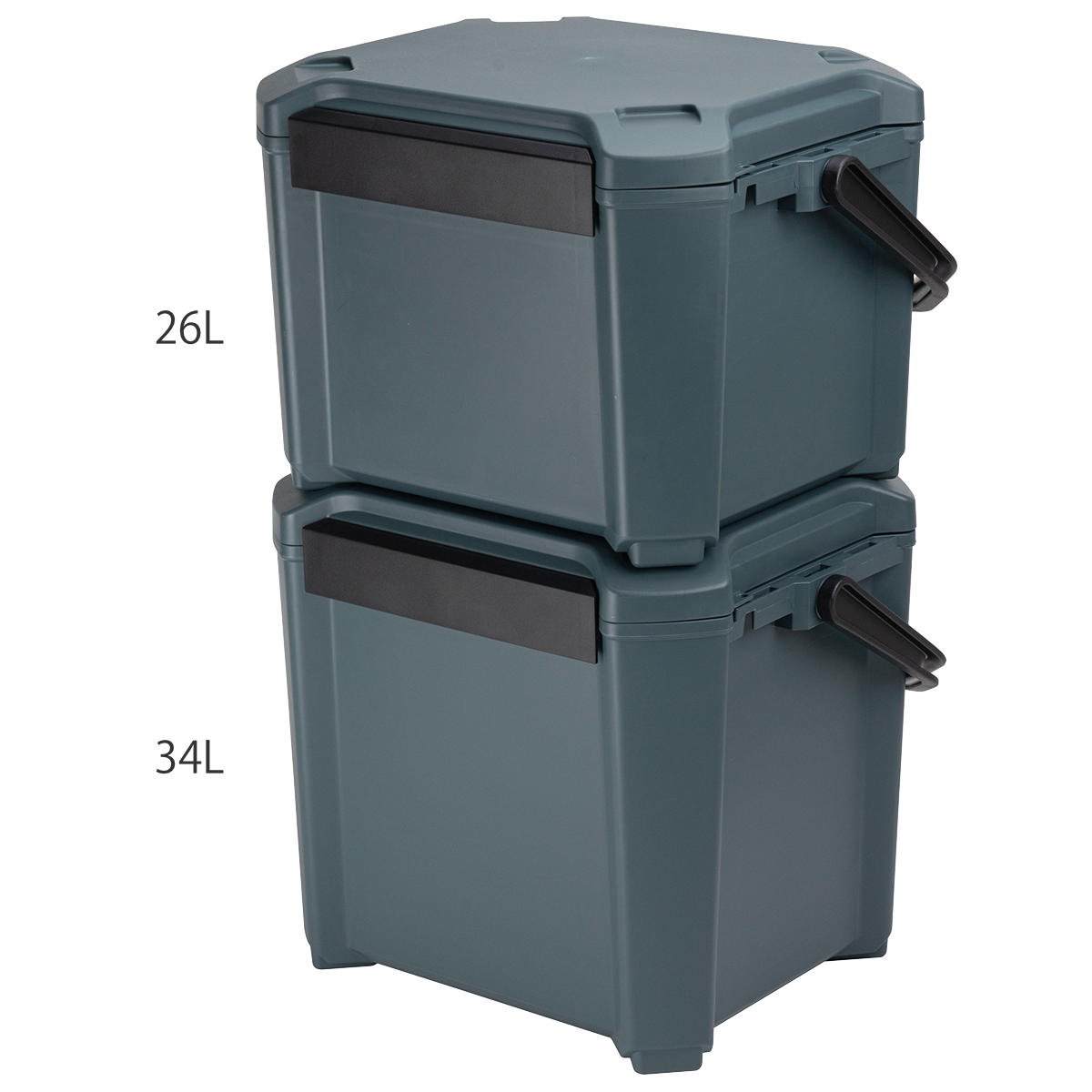 同じサイズのクーラーボックスはもちろん、同シリーズで26Lタイプともスタッキングが可能です。車に積み込むときや収納時にも場所を取らず、便利です。