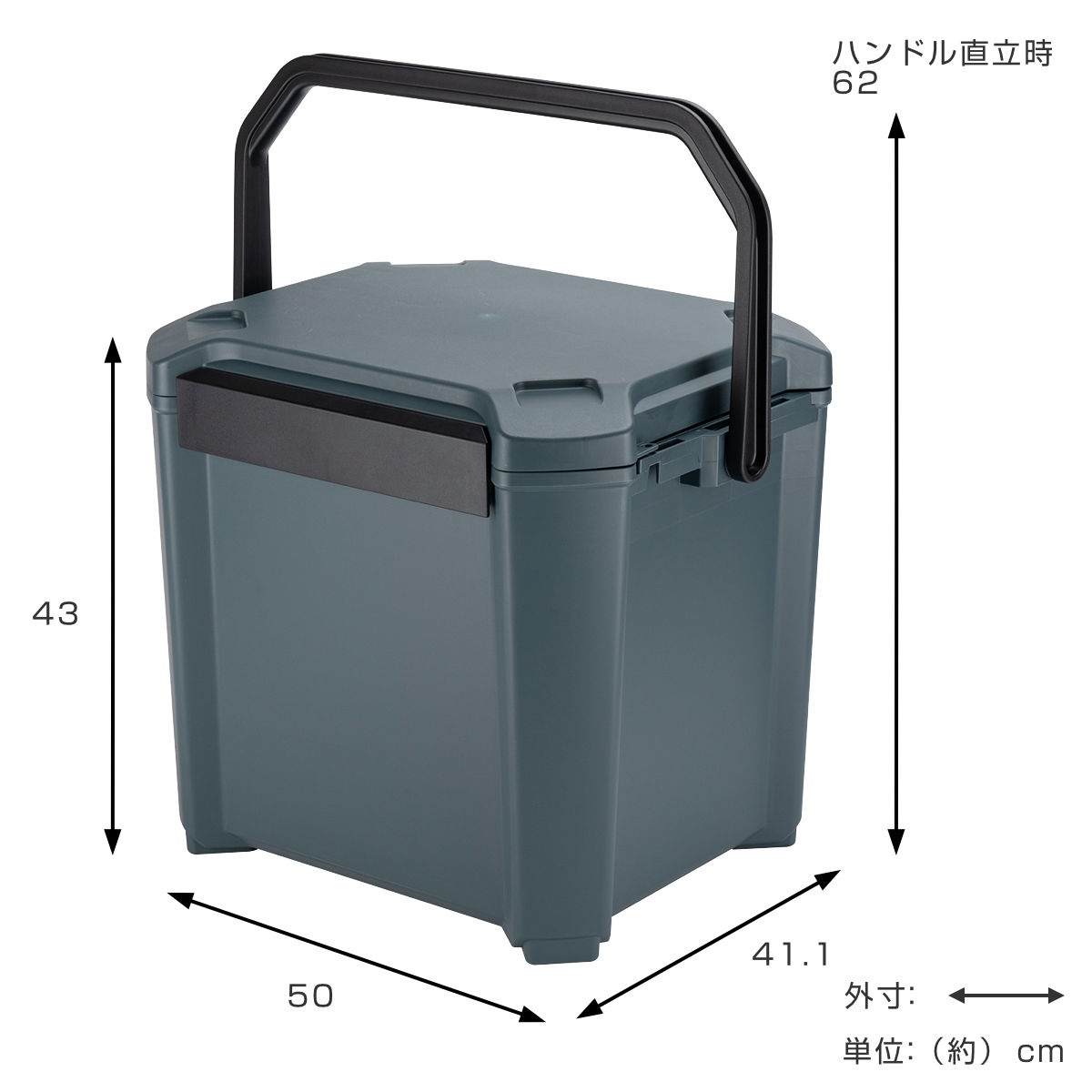 | サイズ | 外寸:約 幅50×奥行41.1×高さ43(cm) 内寸:約 幅34.2×奥行27.2×高さ35.5(cm) ハンドルを立てたときの高さ:約62(cm) |