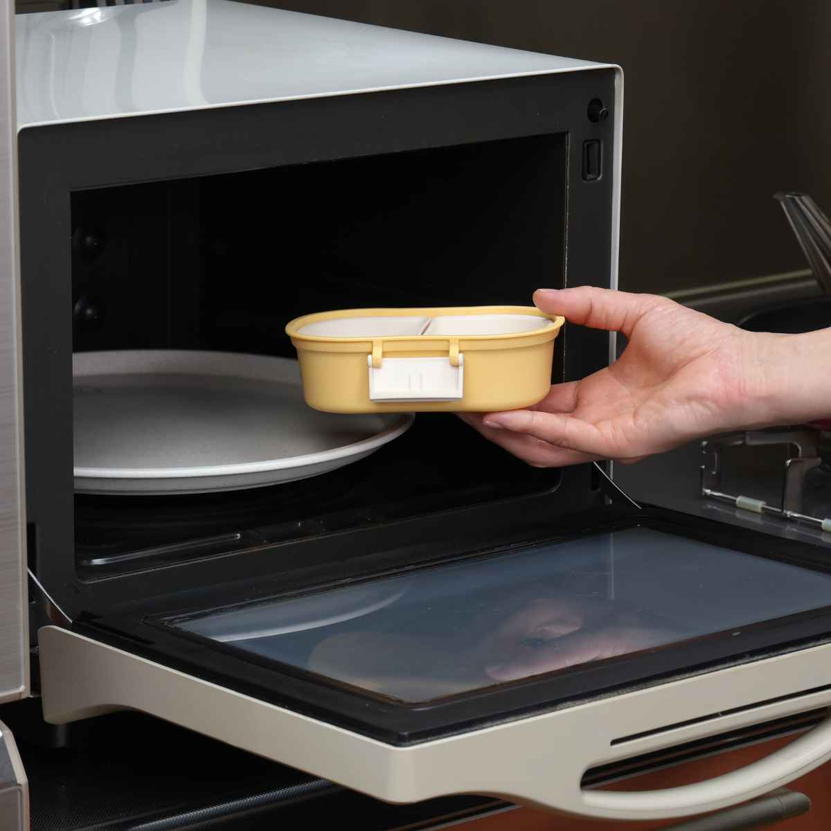 蓋を外せば電子レンジで温め直すことができます。ランチタイムに温かいお弁当が楽しめます。