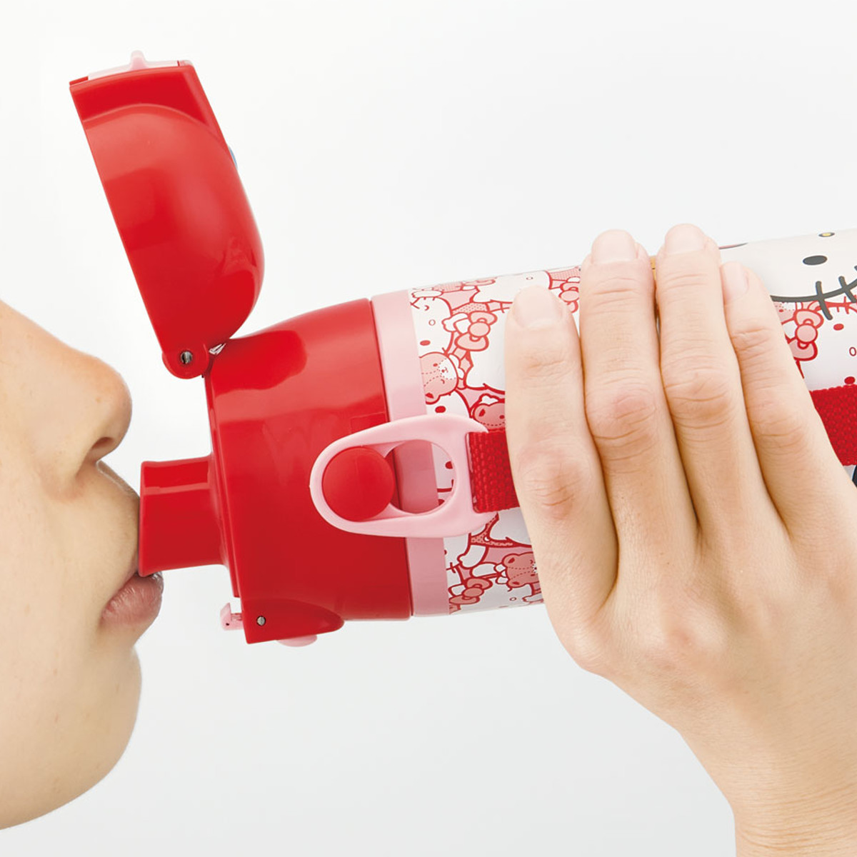 蓋が固定できるキャップロック設計です。飲んでいる時に蓋が邪魔にならず、片手で素早くスムーズに水分補給できます。