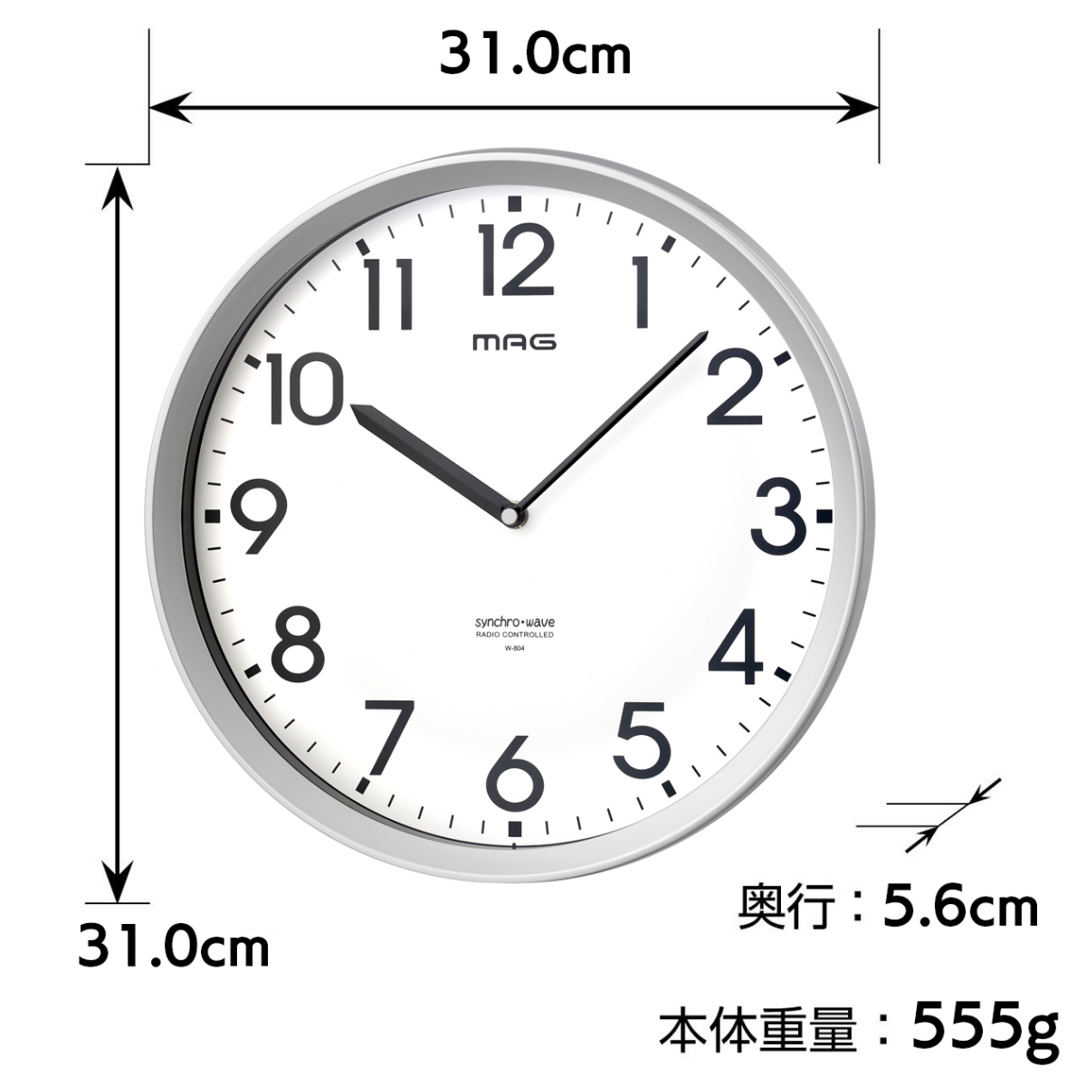 掛け時計 エコグリン MAG 電波時計 電池寿命5年 秒針なし 静音