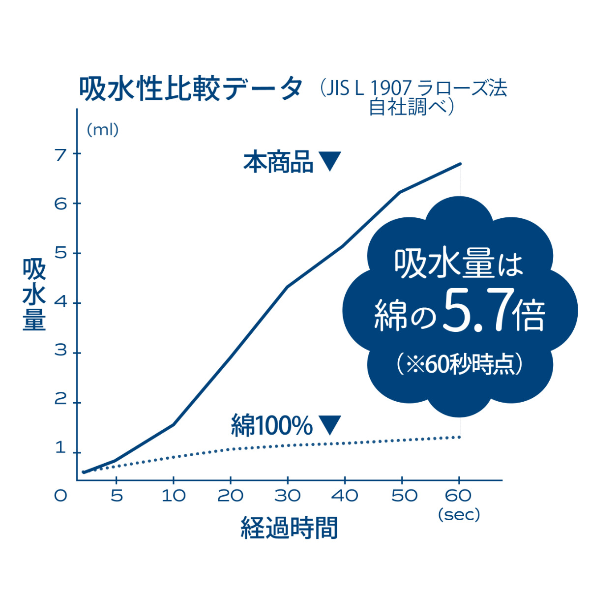 たっぷり吸水した後も脱水すると一気に軽くなり、速乾性にも優れています。部屋干しが多くなる季節でも安心です。