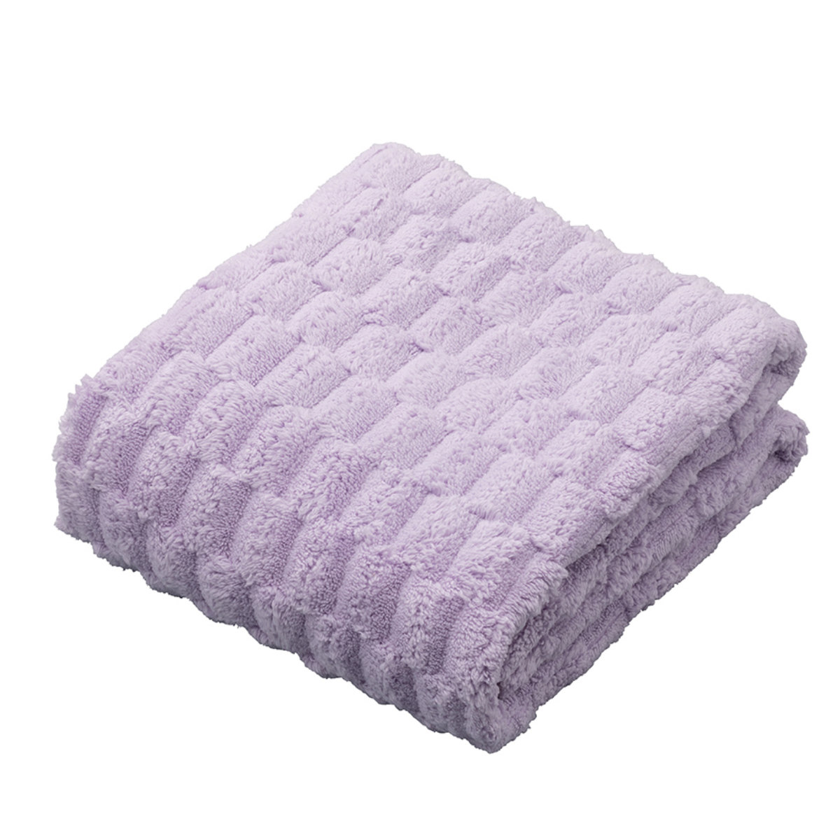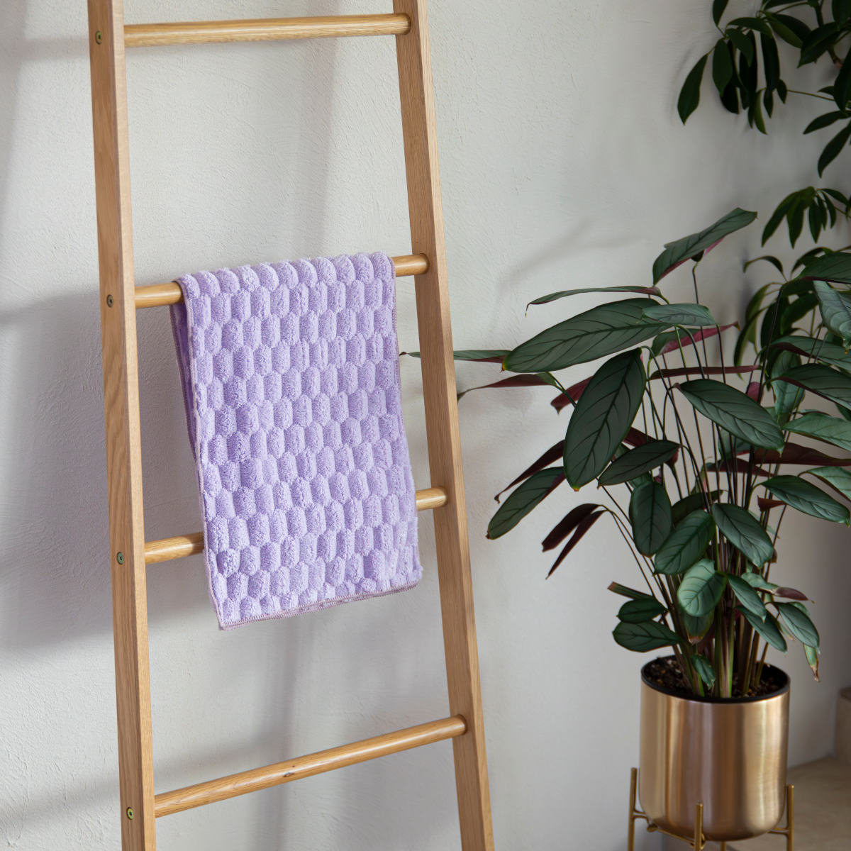 ふんわり軽いのに、驚くほどの吸水力で、繊維と繊維の隙間でまるでスポンジのように吸水してくれます。さらにポコポコの立体構造で触れる面積が多いので、髪の毛に巻いてヘアドライにも大活躍です。