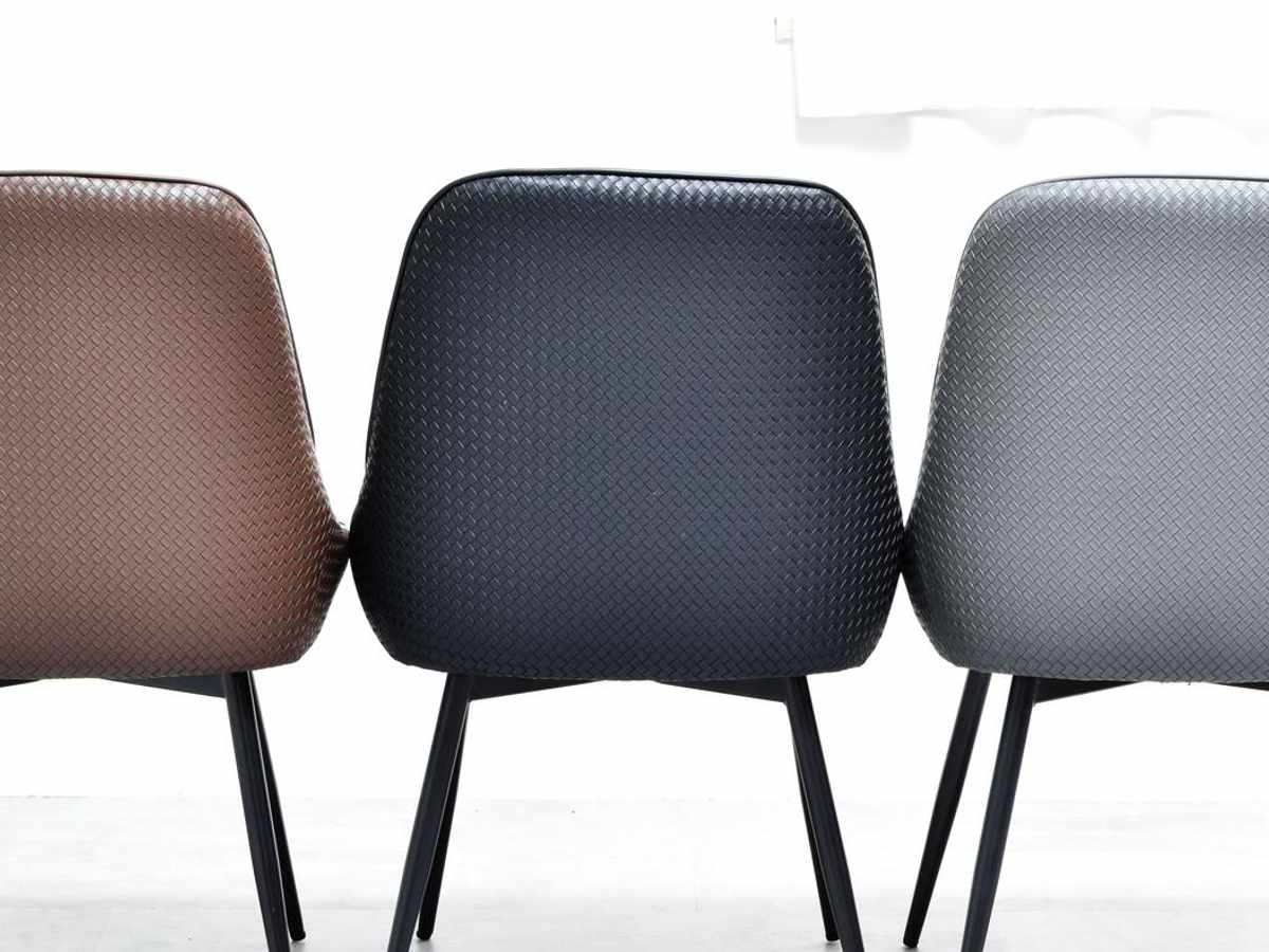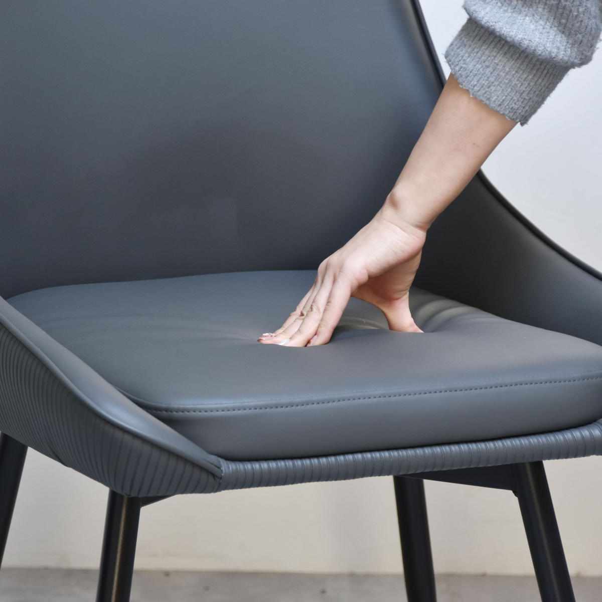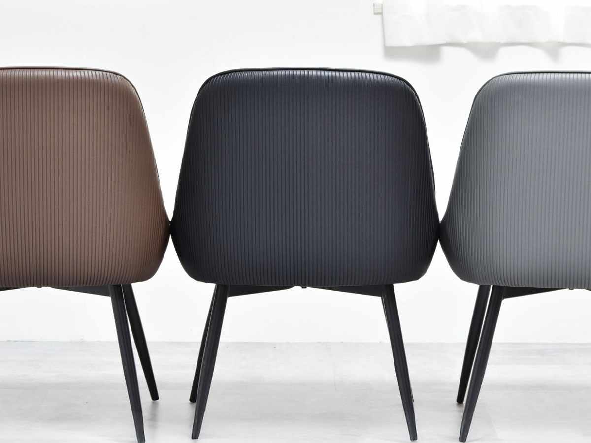 「背面で魅せる、洗練されたデザイン」をコンセプトにしたダイニングチェアです。背面には型押しデザインを施したPUレザーを採用。光の当たり方でドラマティックな陰影が生まれ、高級感を演出します。テーブルにしまっている時も座っている時も、背面の美しいデザインが際立ち、空間のアクセントになります。