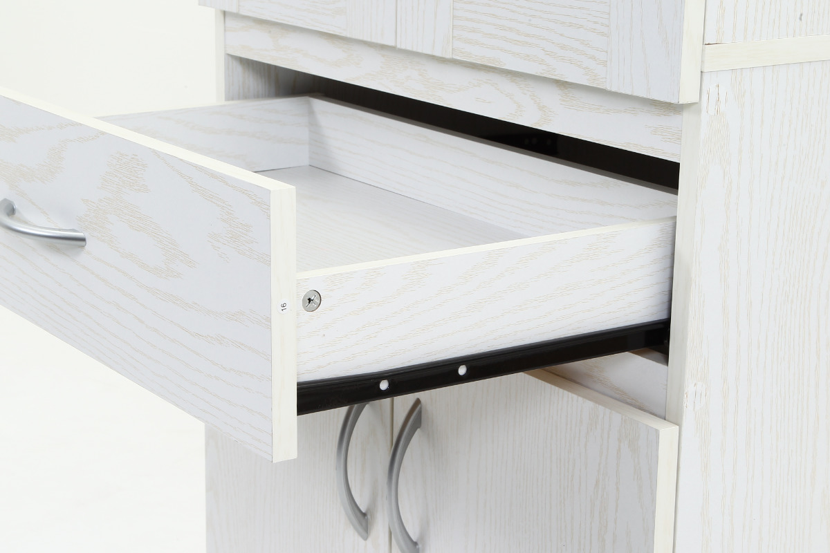 中央部分の引き出しには、カトラリーやキッチン小物を収納できます。スライドレール付きでスムーズに引き出せます。