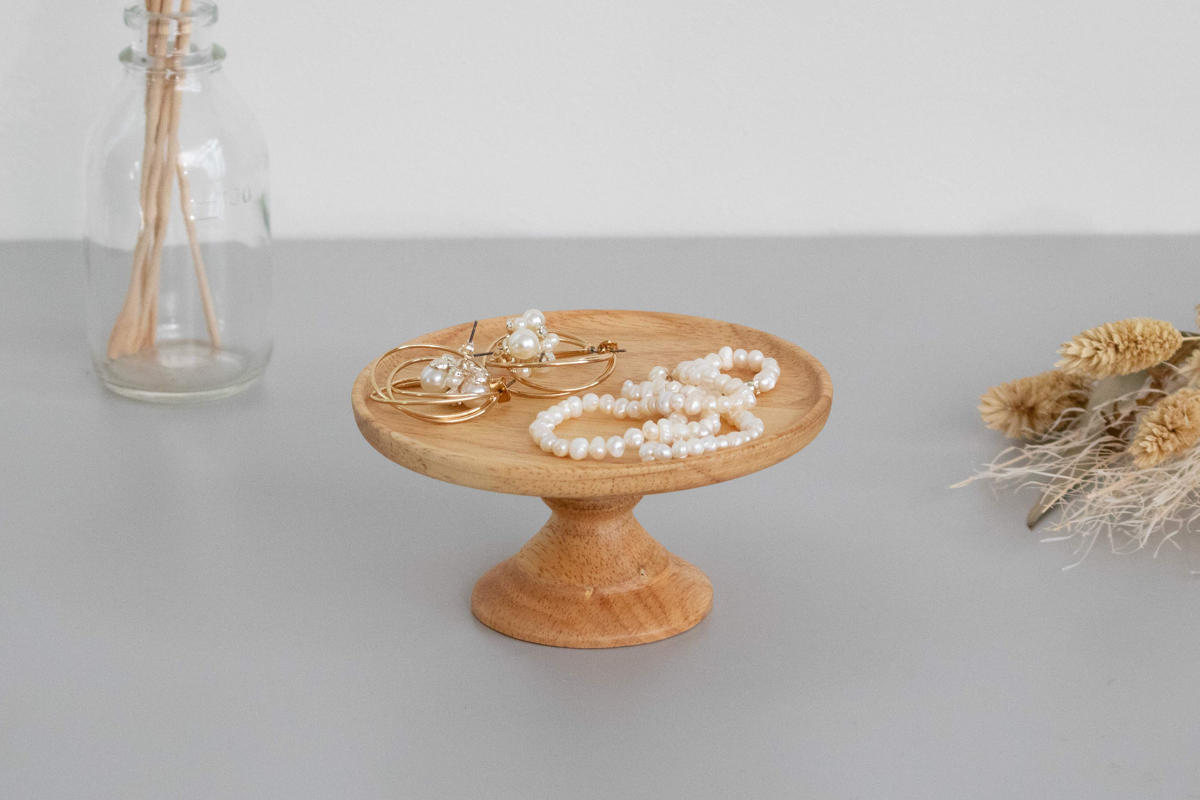 天然木の温かみのある風合いと自然な木目が美しい、小ぶりで可愛らしいサイズのコンポートディッシュです。フルーツやナッツ、ちょっとしたスイーツを置くのにぴったりで、ティータイムやアクセントプレートとしても活躍します。