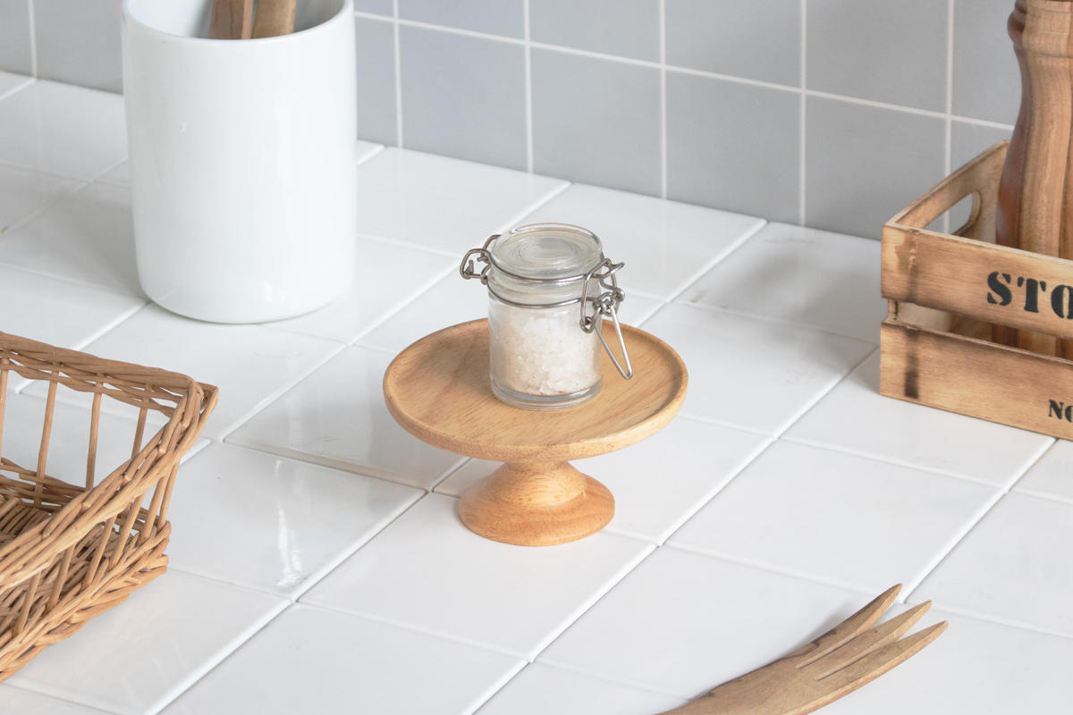 高さのあるコンポートディッシュは、スパイススタンドとしても活躍します。調味料ボトルやスパイスジャーをまとめて置くことで、キッチン周りをすっきり整理できます。ダイニングテーブルに置きっぱなしにしても見せる収納としてさりげないアクセントを添えてくれます。