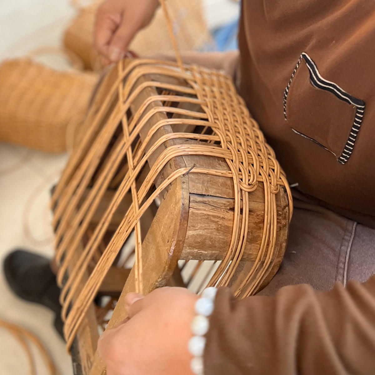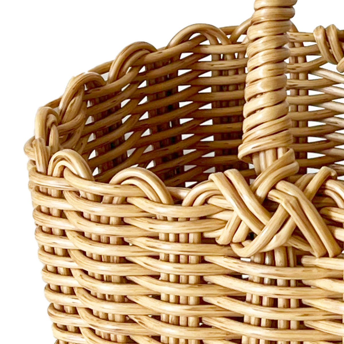 かごを編みやすい適正な粘度に加工し、抗菌素材を配合した素材をひとつひとつ職人が丁寧に編み上げて造られています。天然素材の温もりや味わいを再現し、やさしい風合いが感じられる逸品です。