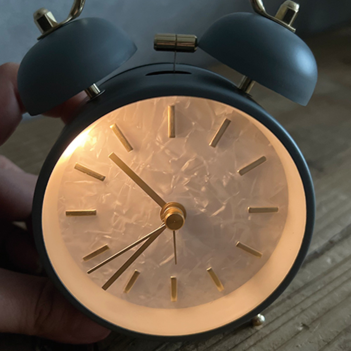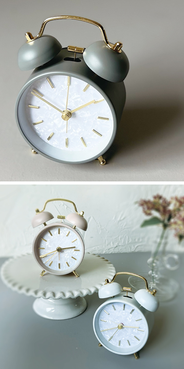くすみカラーがかわいい置き時計です。クラシカルなツインベルデザインが、お部屋に上品さを演出。アンティークなテイストとも相性が良く、お手持ちのアンティ―ク小物とあわせてディスプレイするのもおすすめです。