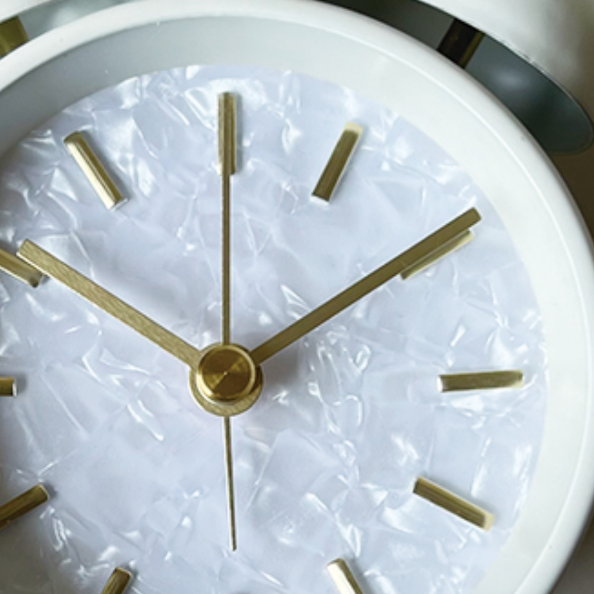秒針がすべるようにして文字盤上をスムーズに動きます。カチカチ音がしないので、寝室など静かな場所でのご使用にもおすすめです。