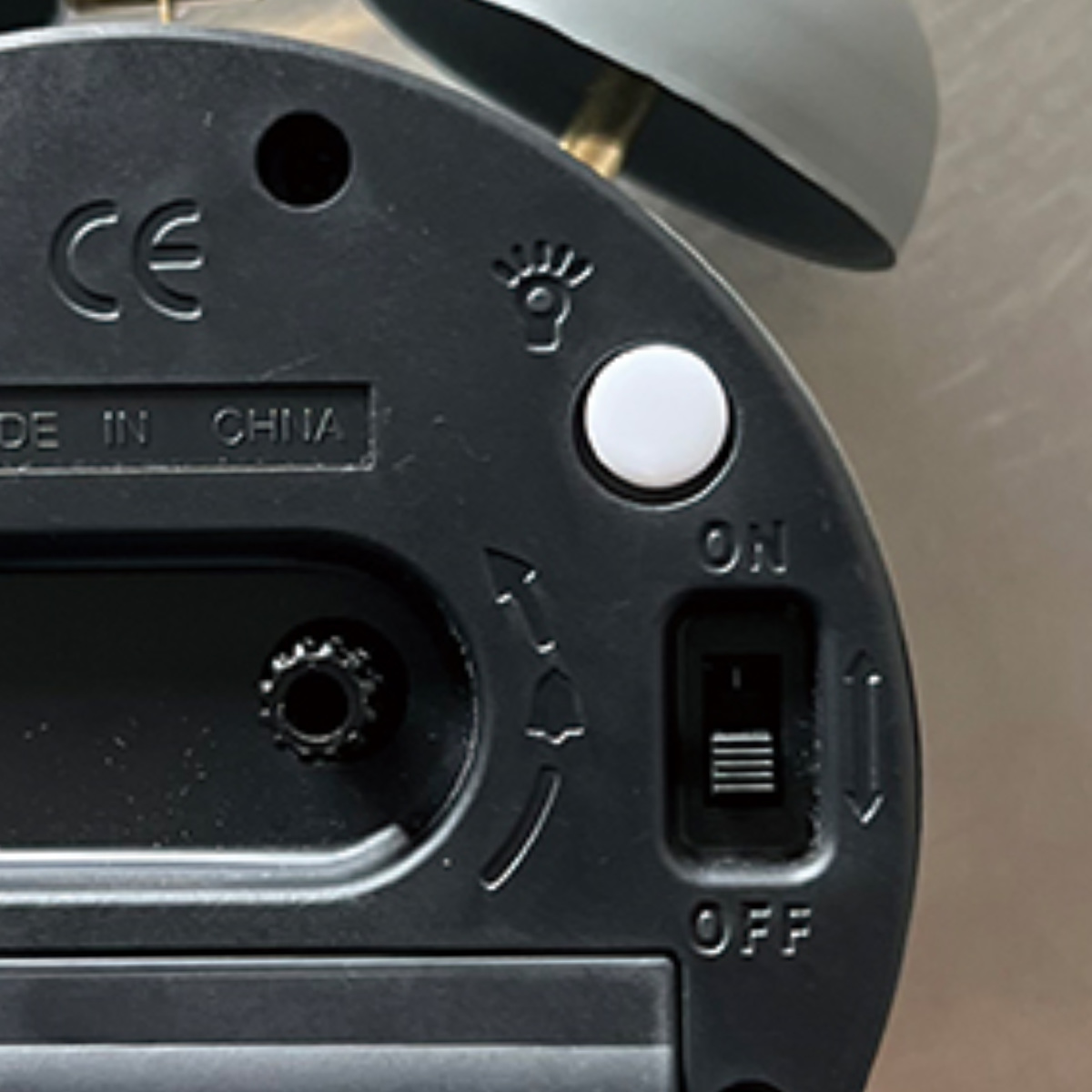 背面のボタンを押すとライトが点灯し、夜間でも時刻の確認ができます。またアラームのON/OFFも背面のスイッチで操作できます。
