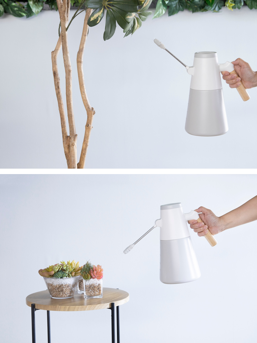 観葉植物やガーデニングにぴったりの電動ミストです。植物の種類や用途に合わせて水量と角度が調整でき、毎日の水やりが手軽に楽しくできます。