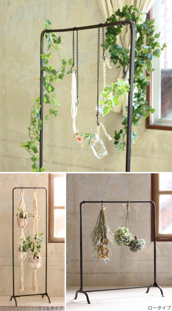 洋服やバッグを掛けるだけでなく、S字フックを使って観葉植物やドライフラワーなど飾るディスプレイスペースとしても楽しめます。