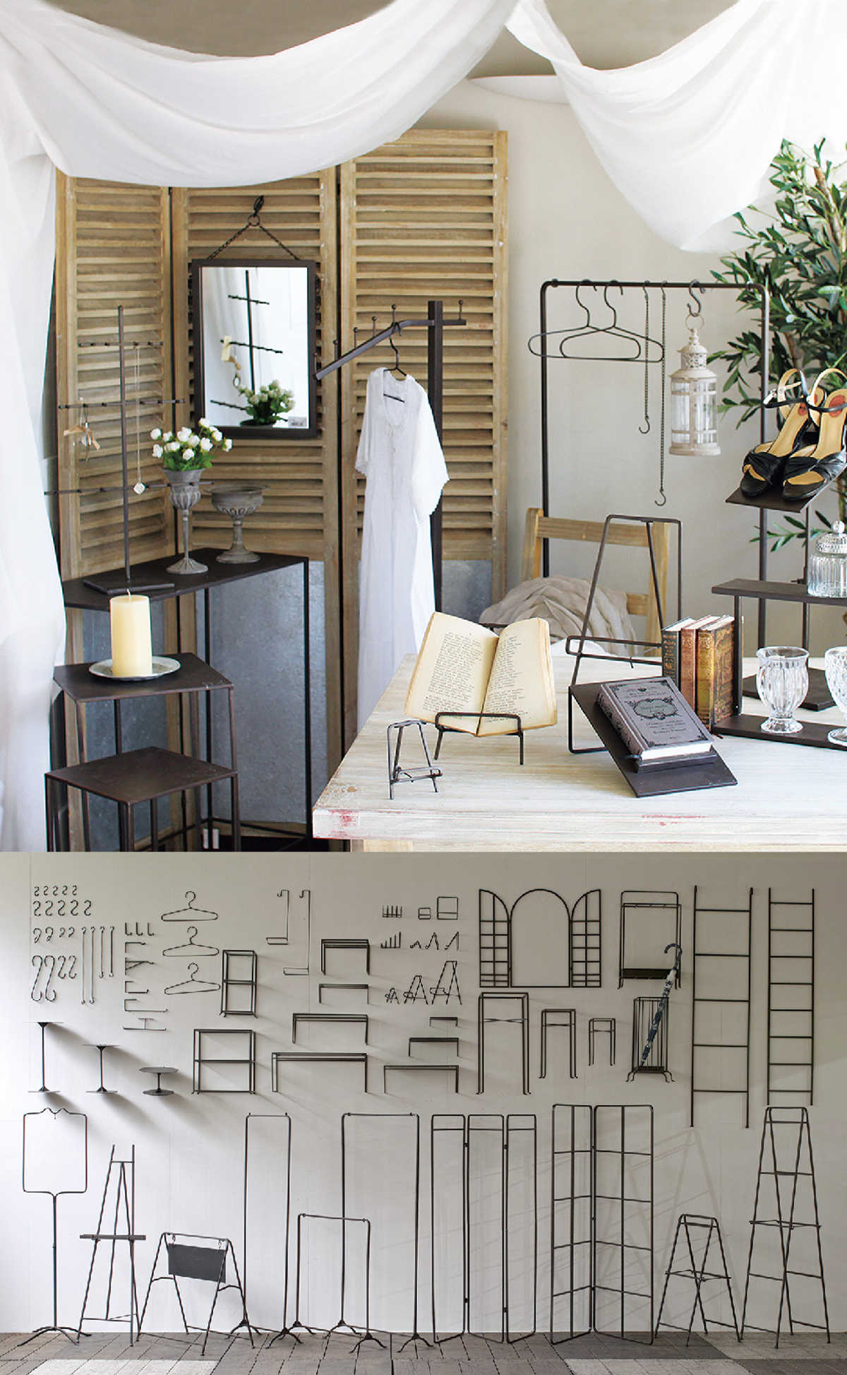 ハンドメイドの温かみを含ませ、シンプルを追求し、「線」で構成された唯一無二のオリジナルフォルムです。シンプルなシルエットは、繊細で上質な空気感を漂わせ、吊り下げたアイテムをより引き立てます。
