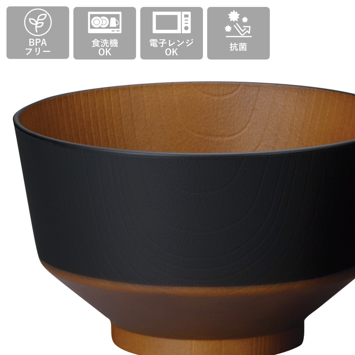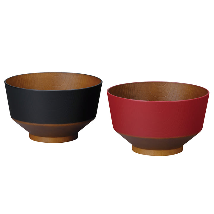 食卓をやさしく彩る、日本の伝統色「漆黒」「古代朱」を使用した汁椀のセットです。お洒落なカフェ風どんぶり、サラダ、具だくさんスープにちょうど良いサイズです。軽くて扱いやすいので、お子様やご年配の方にもおすすめです。