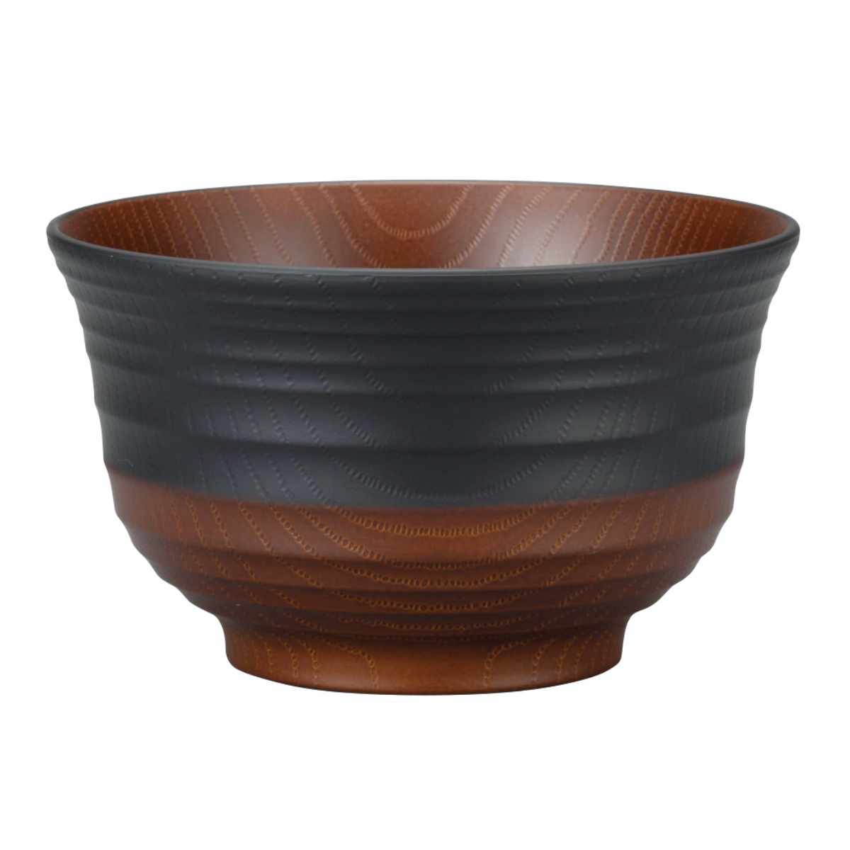 日本の伝統色を使った木目調の丼です。和の色合いでモダンなツートンカラーは和食にも洋食にも合います。牛丼や親子丼には最適です。高台で持ち易く食卓に置く際も安定します。