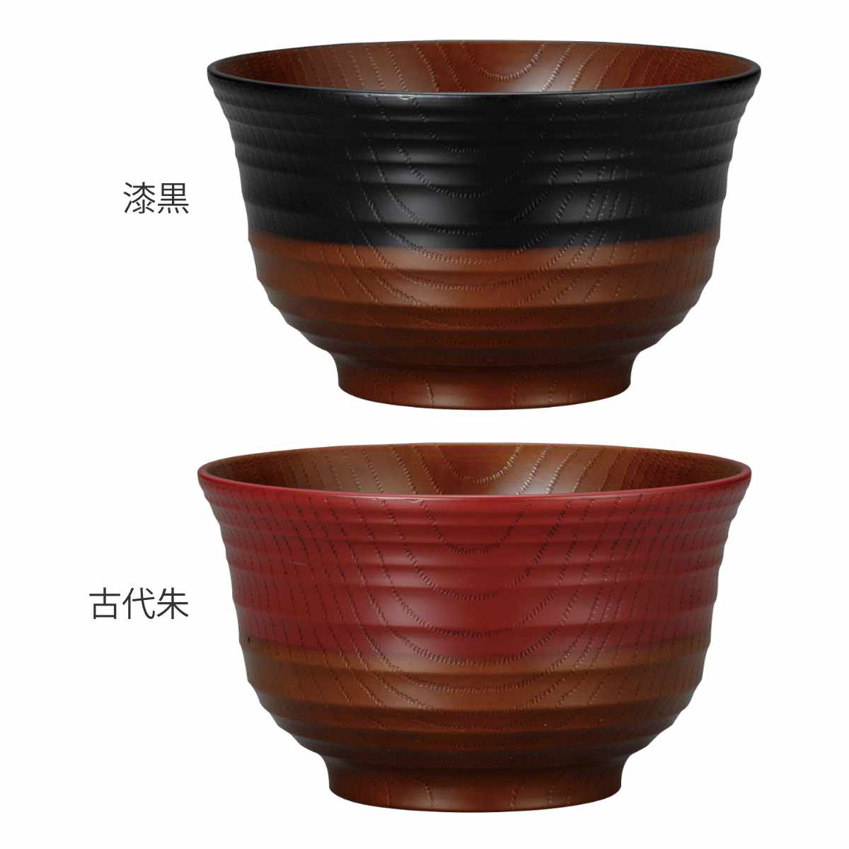 漆塗り仕上げなので一味違う高級感漂う丼です。和の色合いでモダンなツートンカラーは和食にも洋食にも合います。具沢山のお味噌汁やうどん等の麺類にも最適です。高台で持ち易く食卓に置く際も安定します。