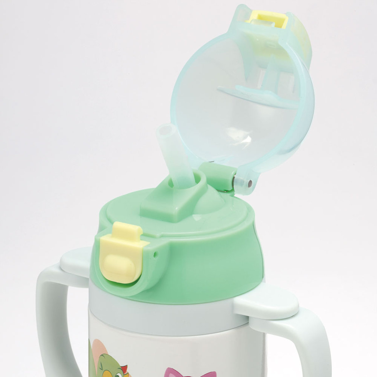 ●蓋は片手で簡単ワンプッシュ式で飲み口はやわらかいシリコーンのストロータイプです。