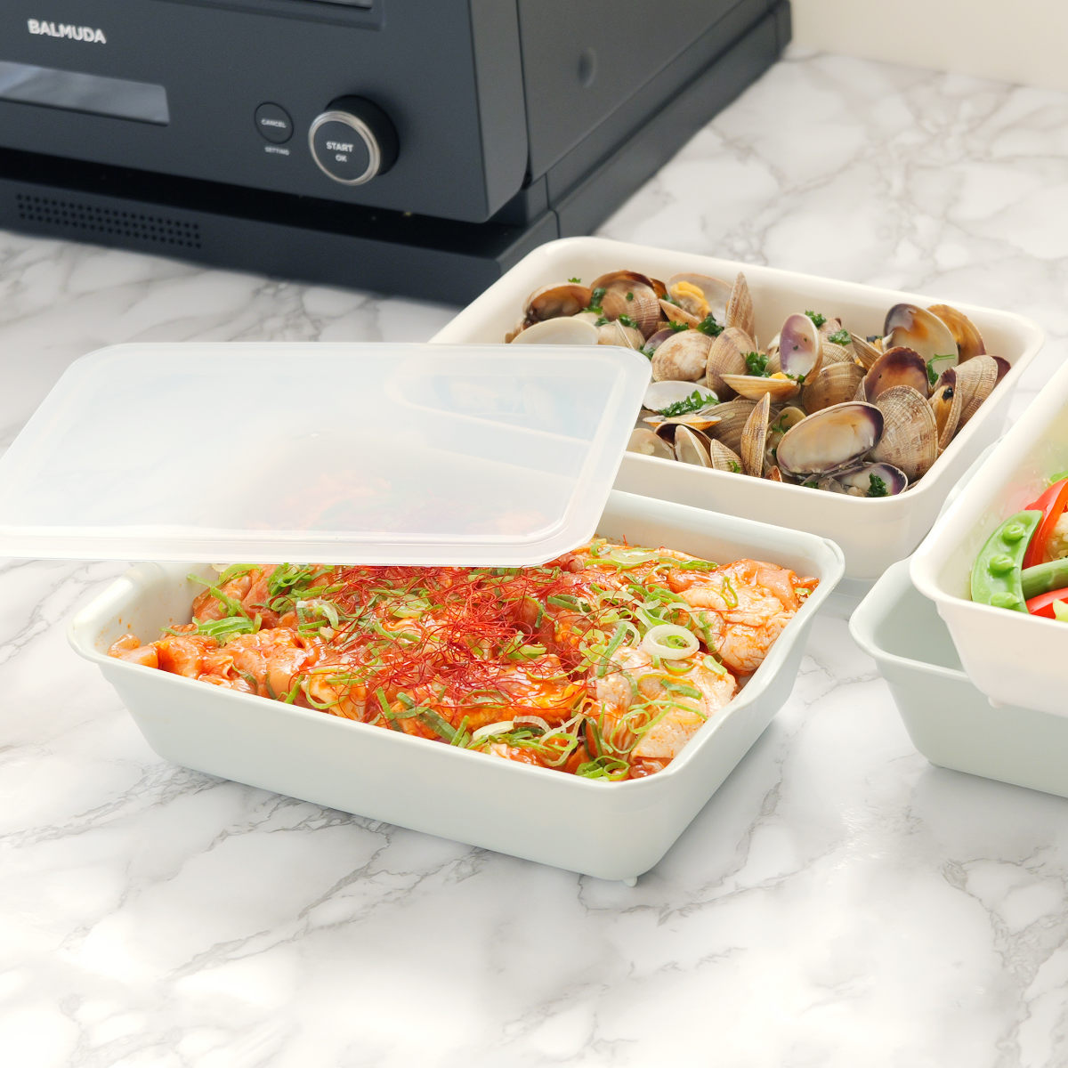 下ごしらえした食材をそのままレンジにかけられるのでとっても便利。フタも電子レンジ対応なので、ラップを使わずエコで経済的です。