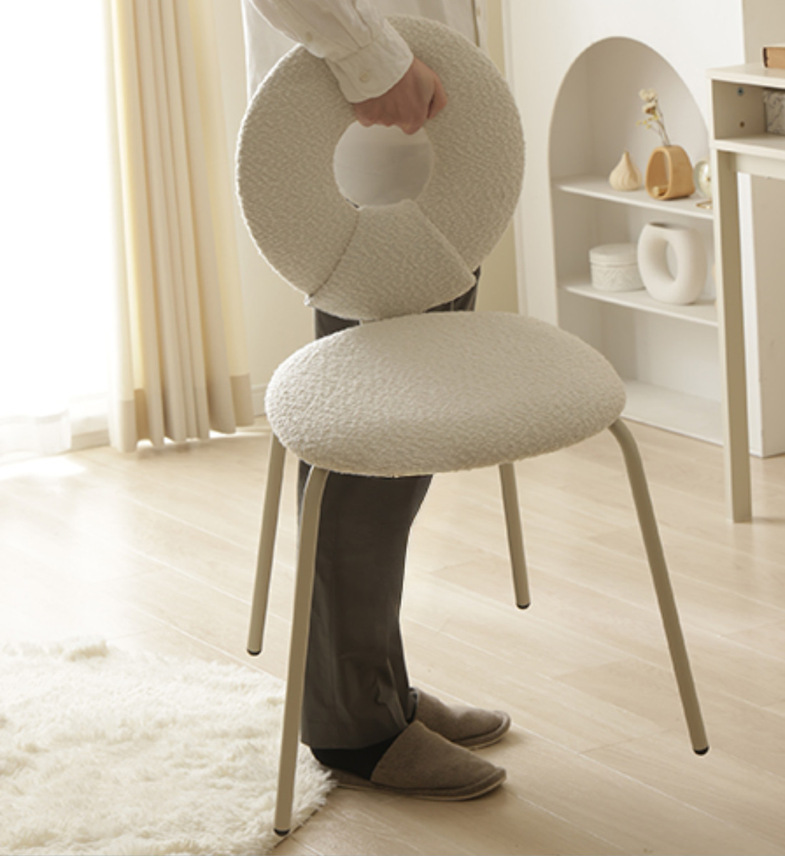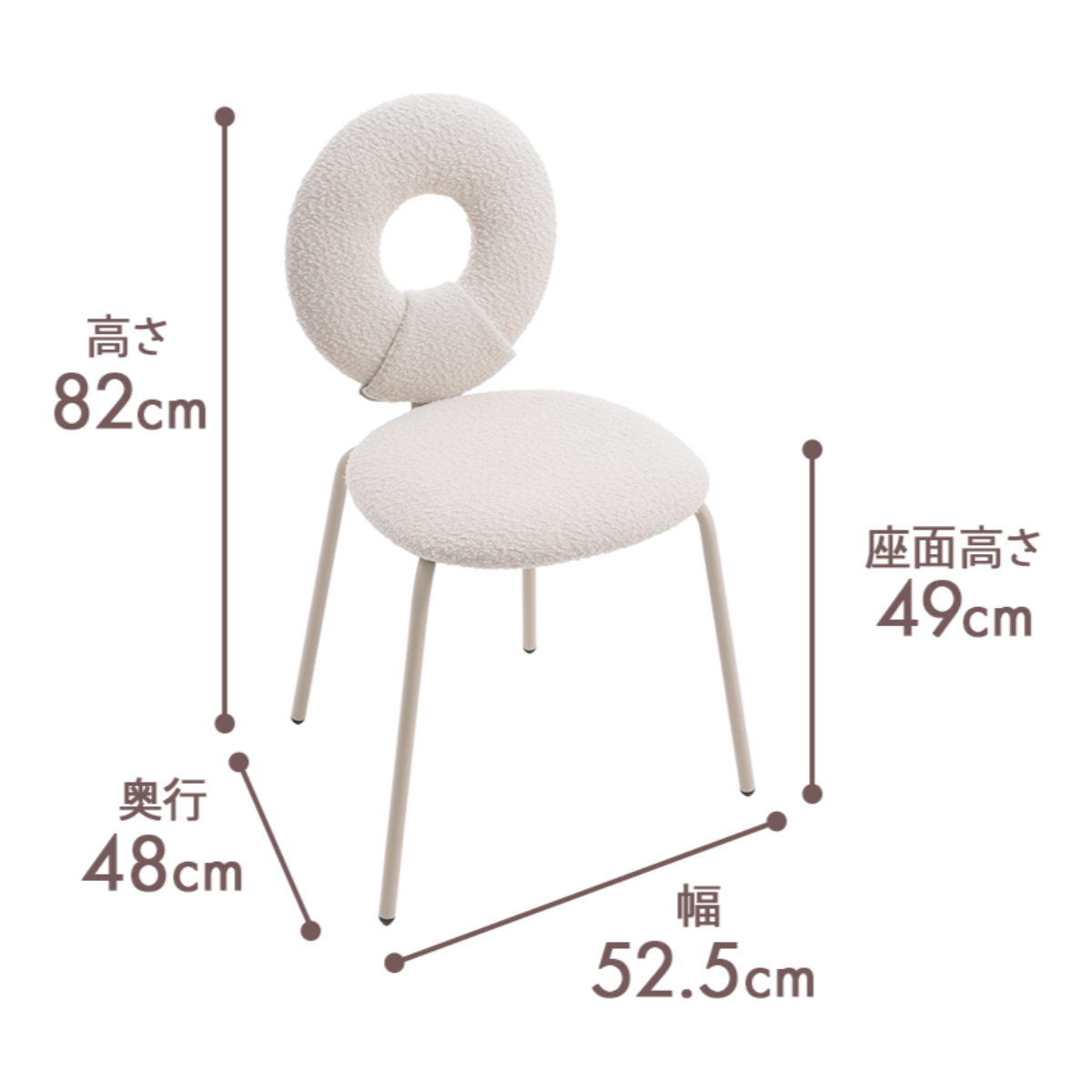ダイニングチェア 座面高49cm ブークレ生地 ワークチェア モダンチェア