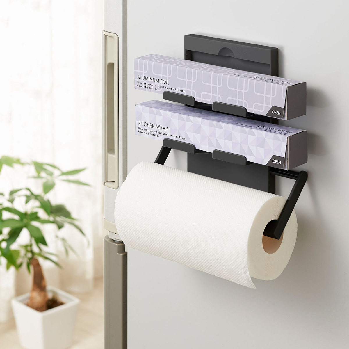 マグネットで簡単設置、フラットになるラップ・ペーパーホルダー