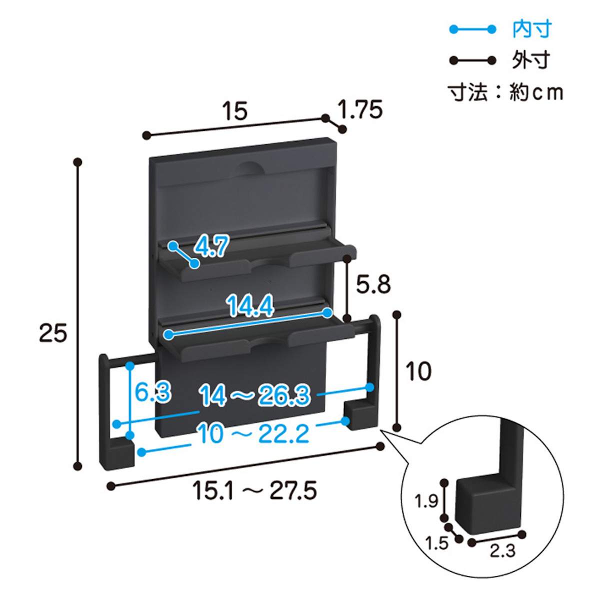| サイズ | 約 幅15.1~27.5×奥行1.75×高さ25(cm) |