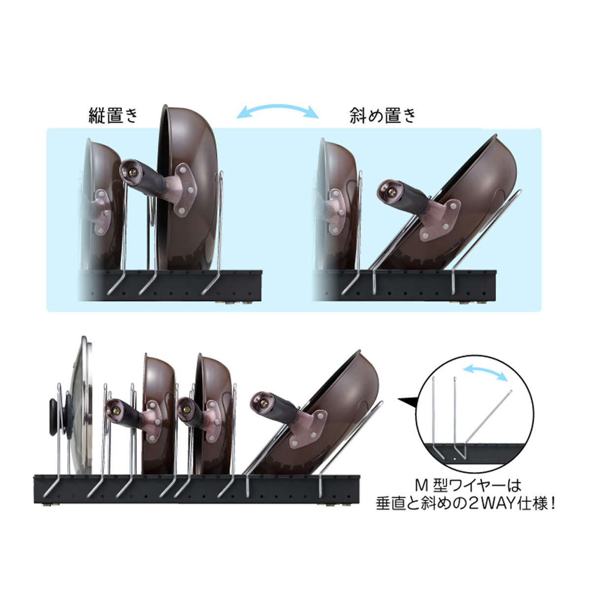 ●付属のM型ワイヤーを斜めに設置することで、大きなフライパンも収納しやすくなります。