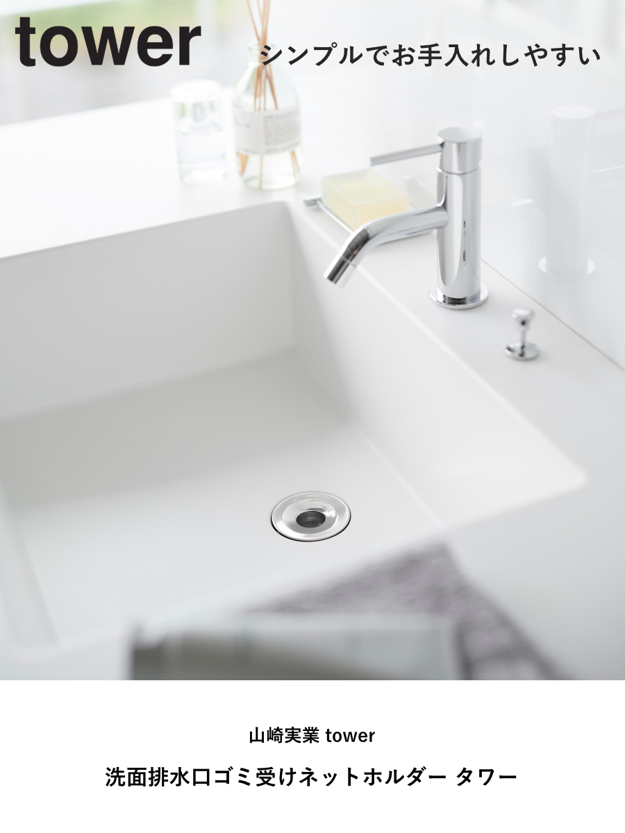 山崎実業 tower 洗面排水口ゴミ受けネットホルダー タワー シルバー