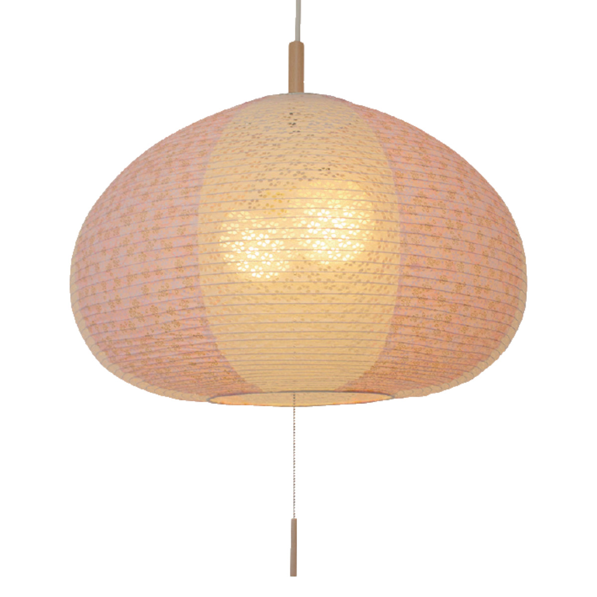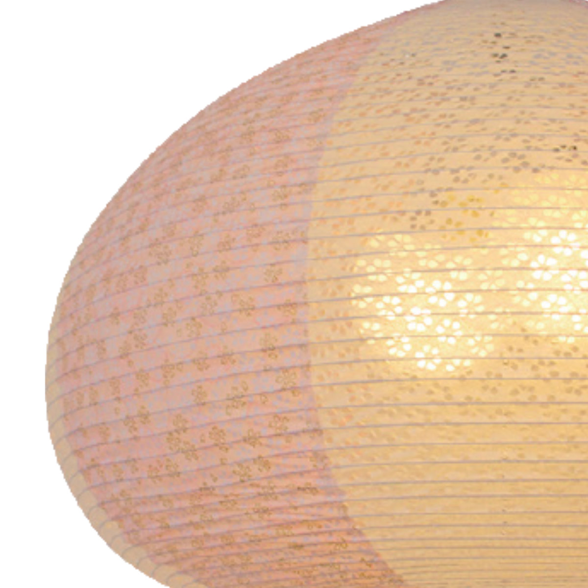 栗のようなふっくらとしたフォルムのペンダントライト「マロン」です。桜模様がキュートなピンク色の和紙と、透かしの小梅柄の和紙を組み合わせました。ころんと丸い形に花が舞う可愛らしいデザインが、空間に癒しを与えてくれます。