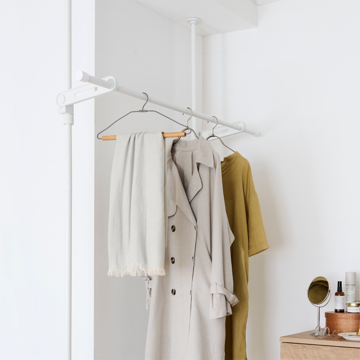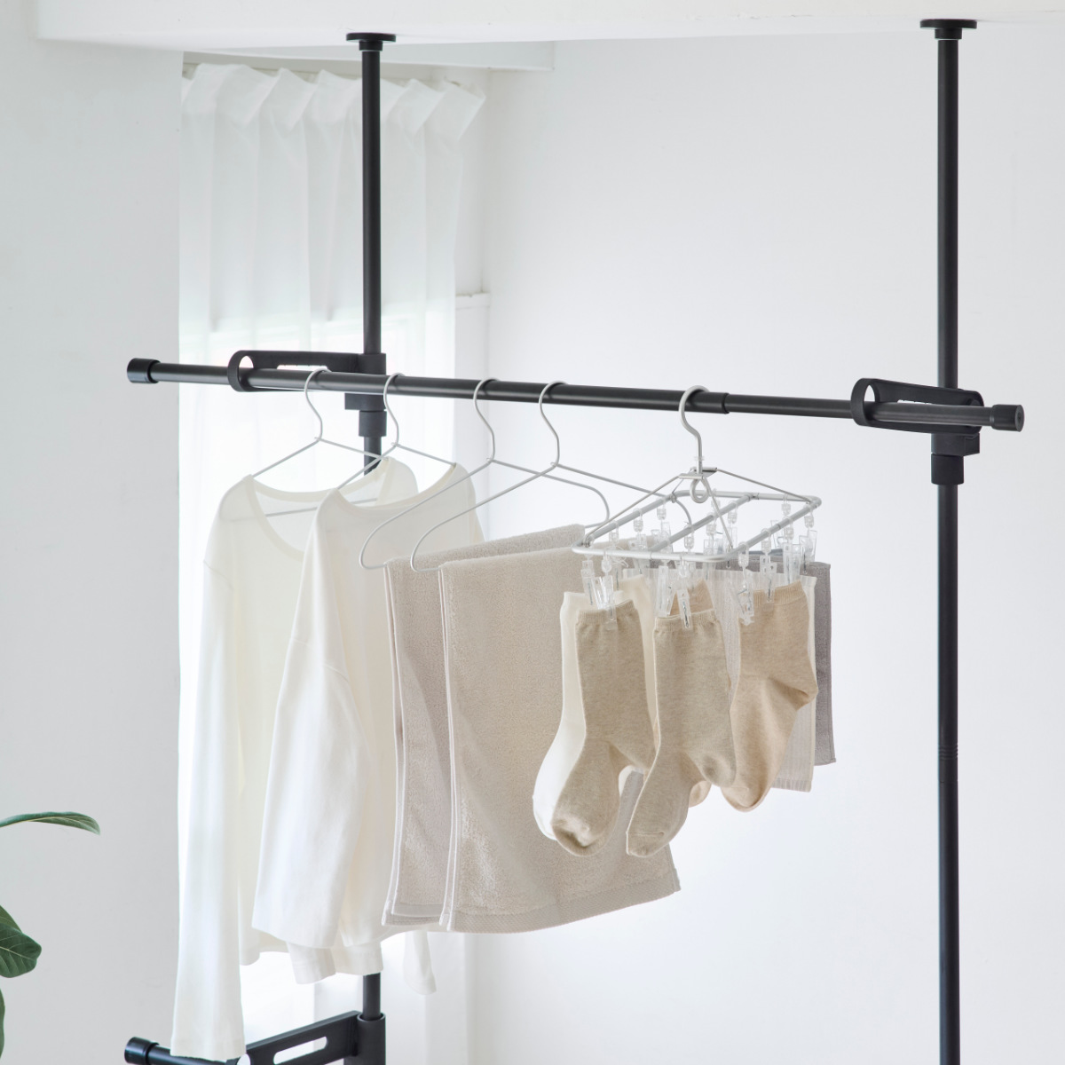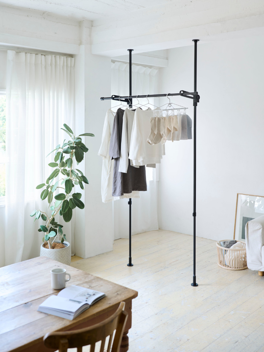 スリムなシルエットの室内物干し竿です。マットな質感がオシャレでシンプルデザインなのでお部屋に馴染みます。
