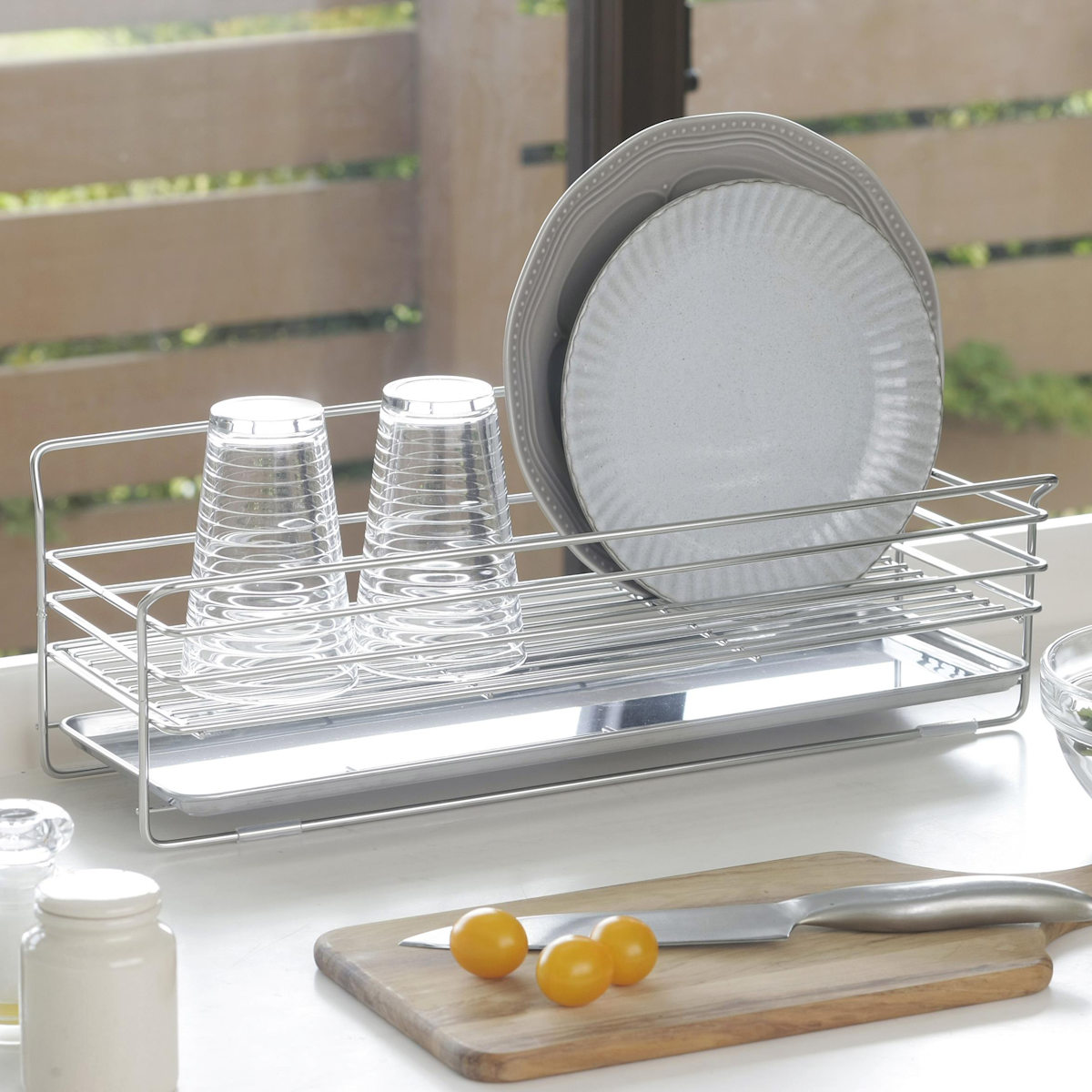 内寸約43.8cmのワイドな幅なので、大皿から小皿、お茶碗、グラスを立てて水切りすることが可能です。線材は太く丈夫な作りで、グラスや小皿も安定して置ける間隔があります。2人分の食器類がラクラク収納できます。
