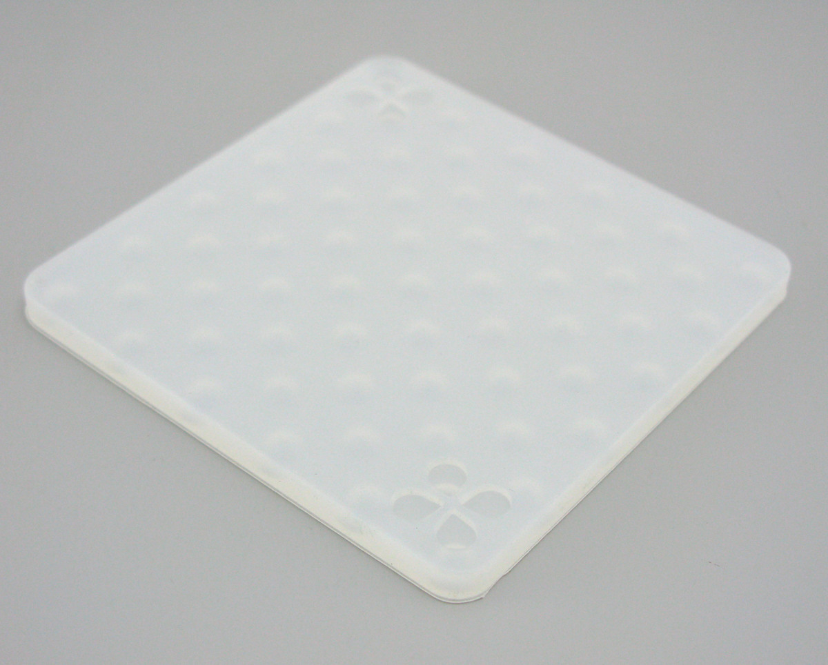 表面の角には花のデザイン模様入りでちょっとした目印としても便利です。ディンプル加工とシリコン素材の効果で、すべりにくく、床への色移りの心配もありません。